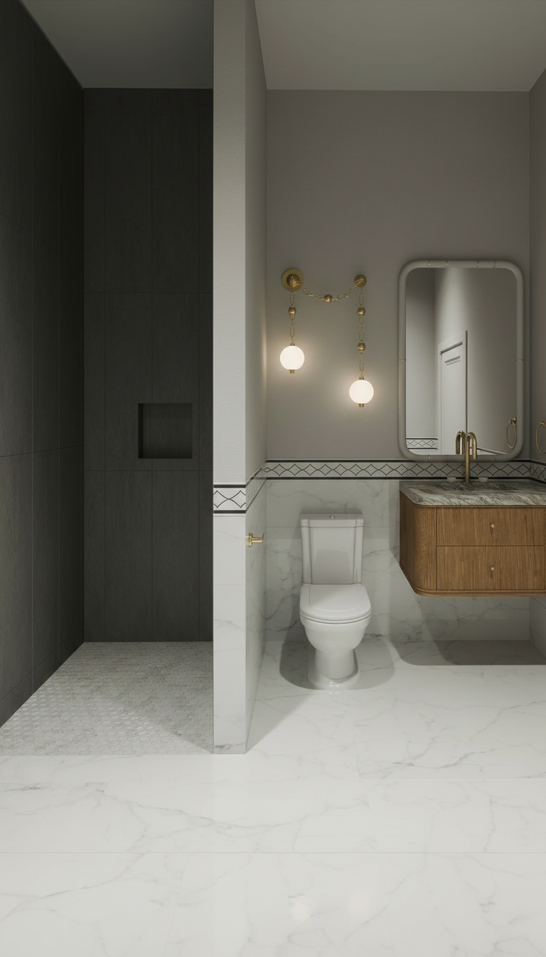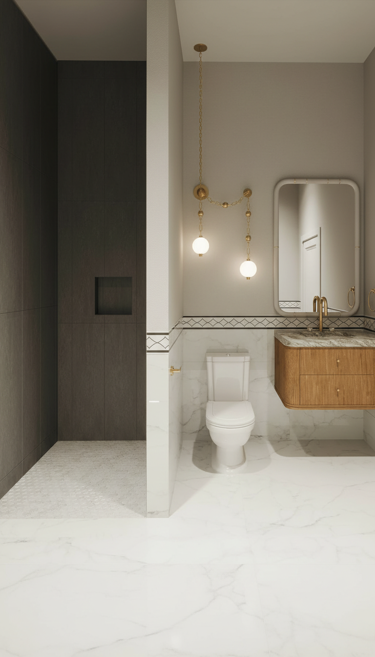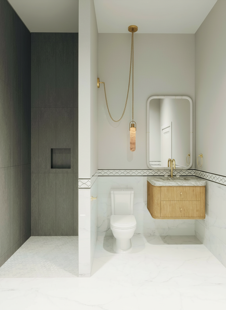 create a white modern bathroom aesthetic using the same lighting