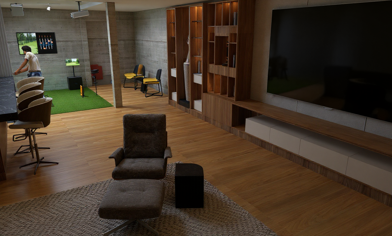 modernist interior shot make it realistic use the same material as the picture i showed i need the wood to be darker and more veiny and my counter top and backsplash is black and my wall also had stoney white texture architecture