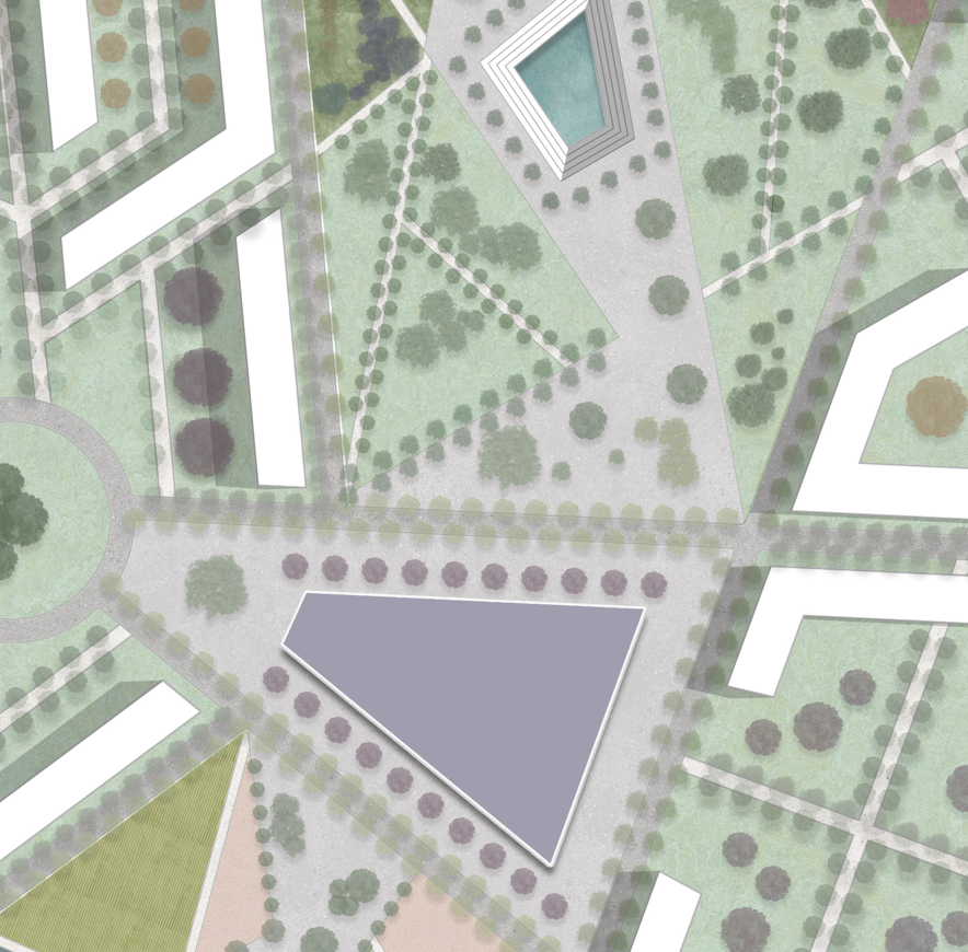 realizza una pensilina fotovoltaica nel trapezio che vedi al centro a copertura di una uscita della metropolitana fai un render realistico aggiungedn oarredo urbano come panchine lampioni e persone mantieni gli alberi e l assetto della foto caricata