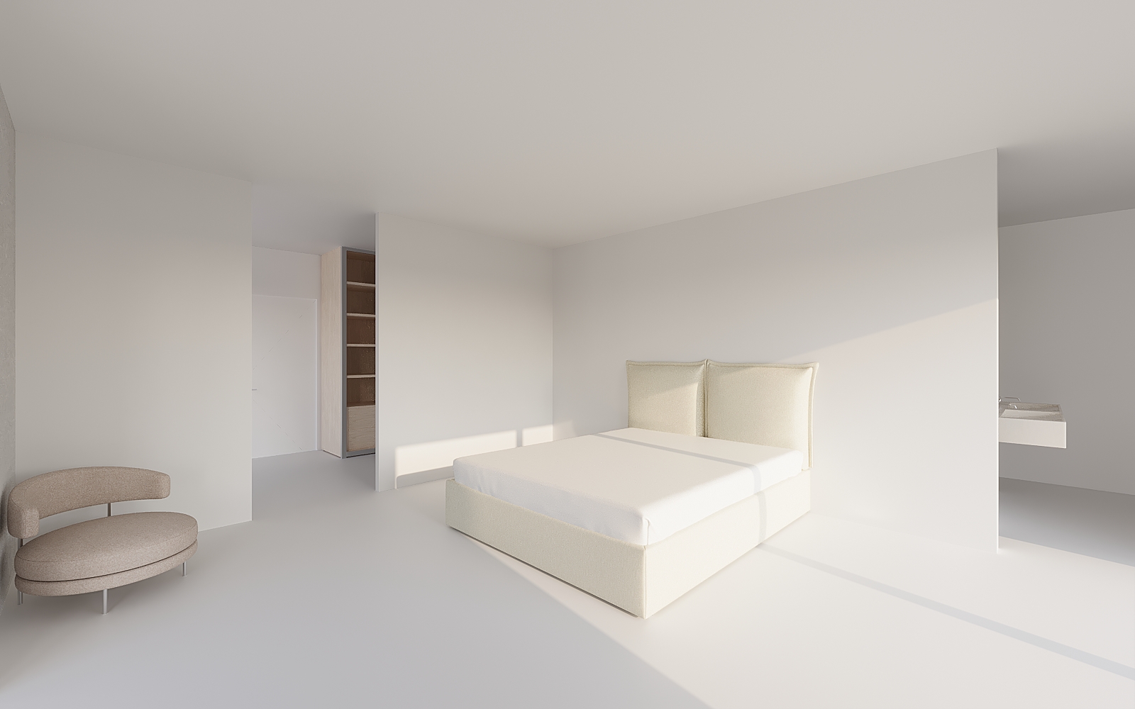 very cool bedroom maison maju style with a nice fabric boudins on the wall behin the bed