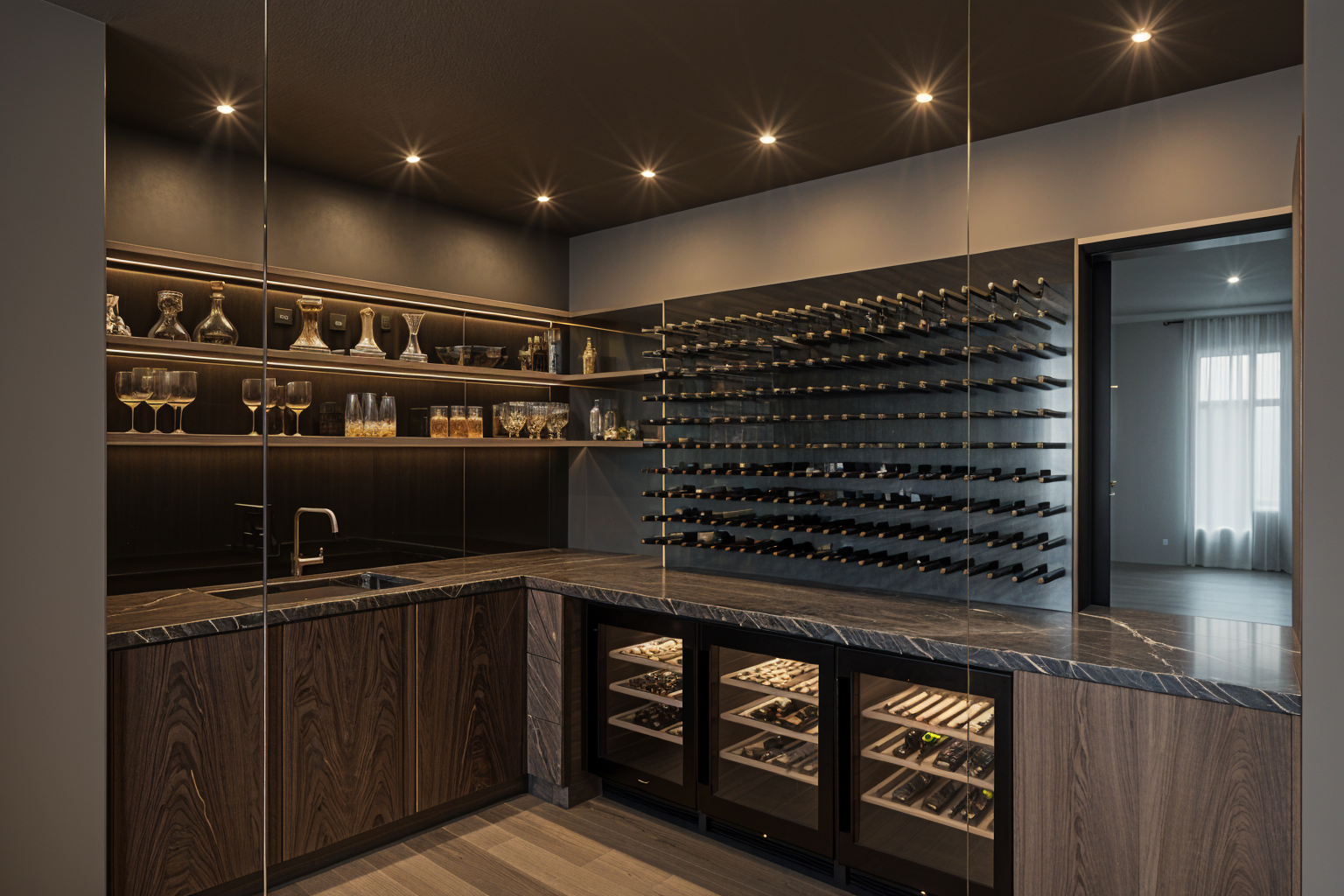 turn the black area into a mirror keep the finishes all the same
