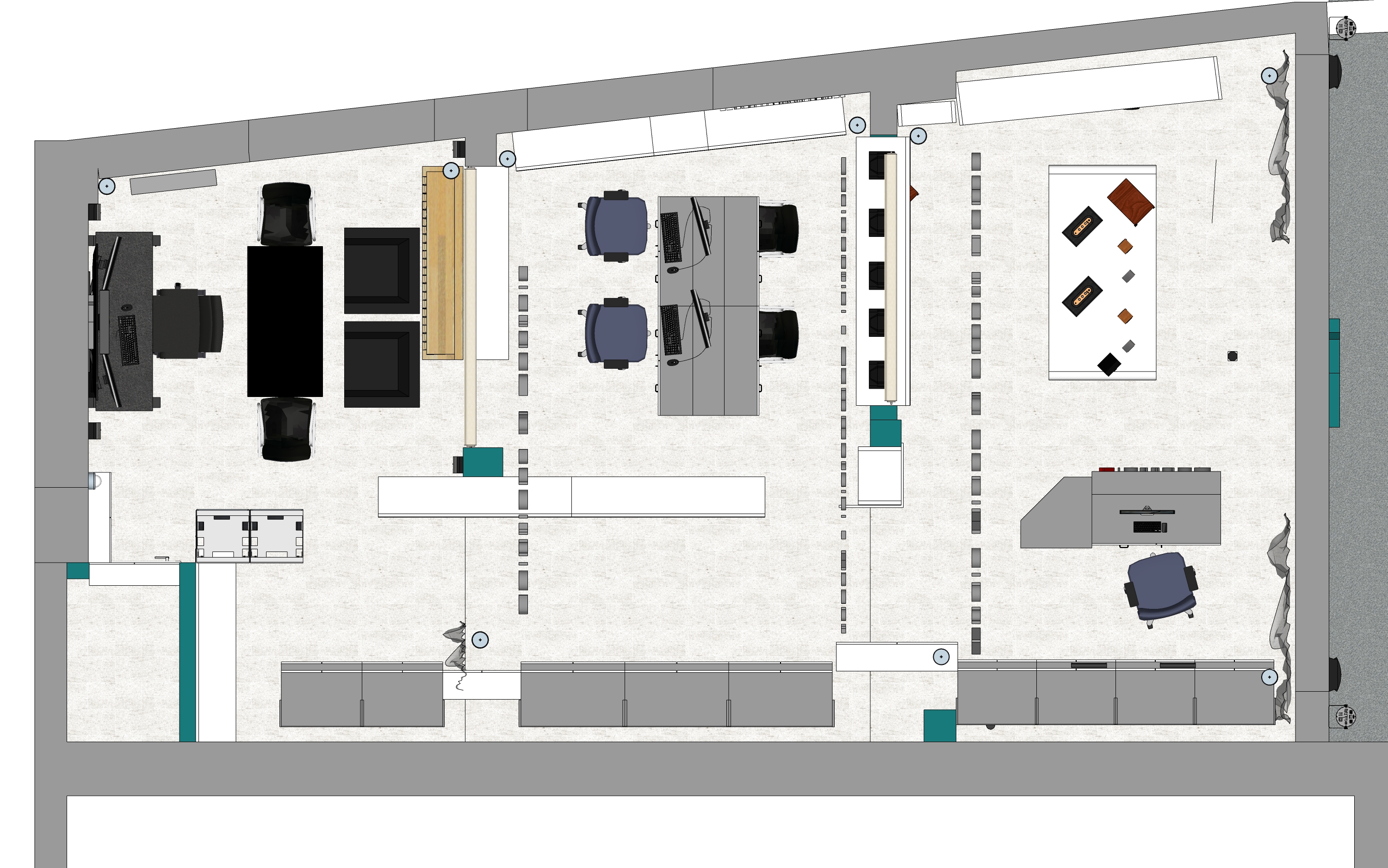 from right to left entrance on the far right right most third is reception and shop mini retail middle part office space and additional retail shelves left part directors office and toilet