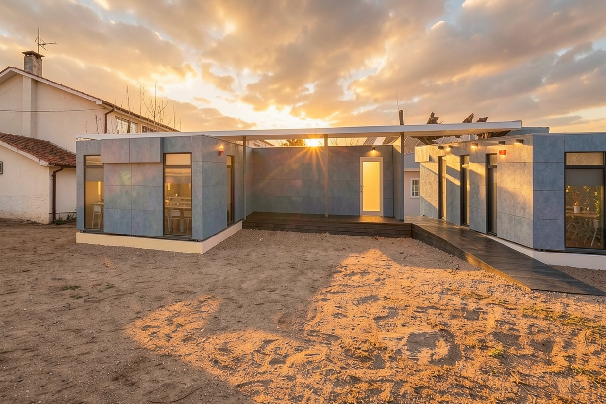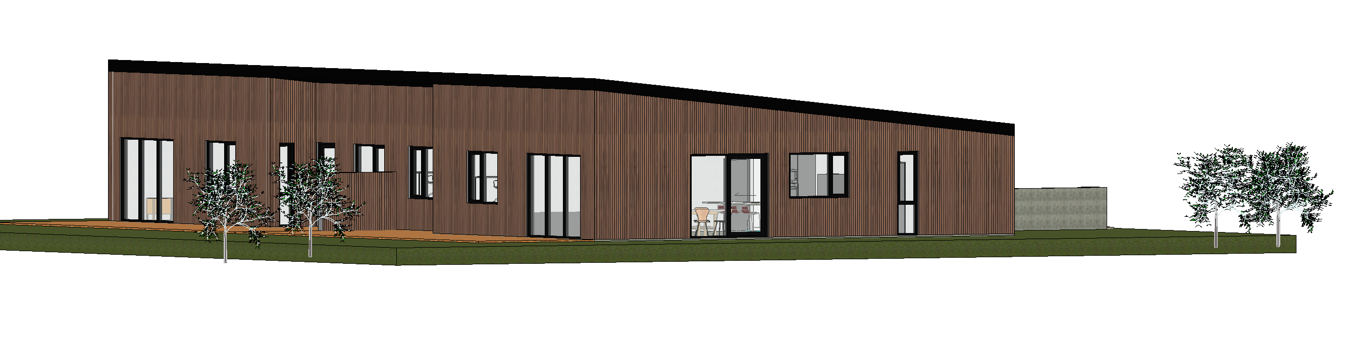 black roof black window and door frames cedar wood slats cladding add background icelandic nature and blue sky