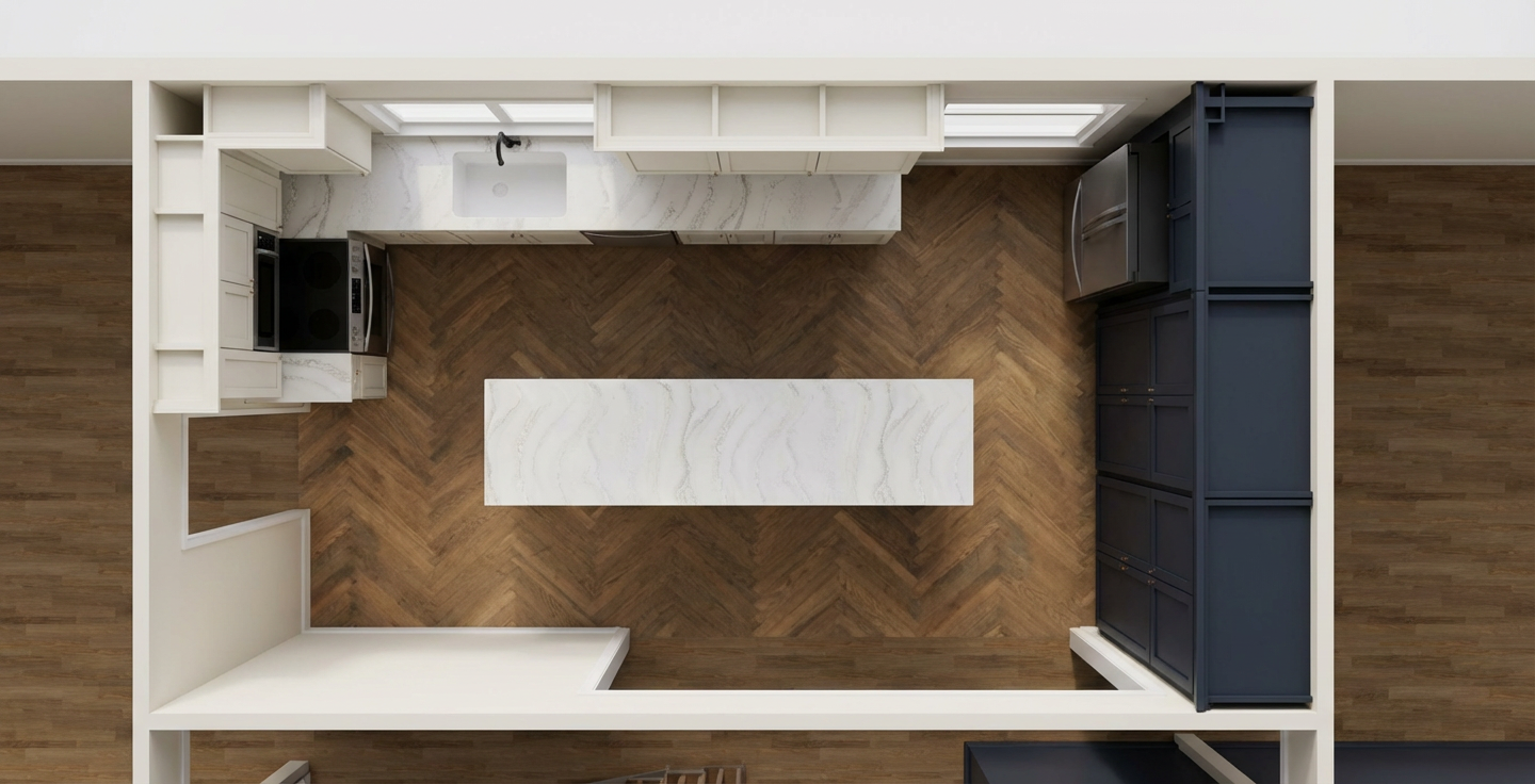 enhanced interior lighting shower head and controls on central tile wall behind glass undermount sink set into countertop in the bottom left tile stops at door countertop is white quartz