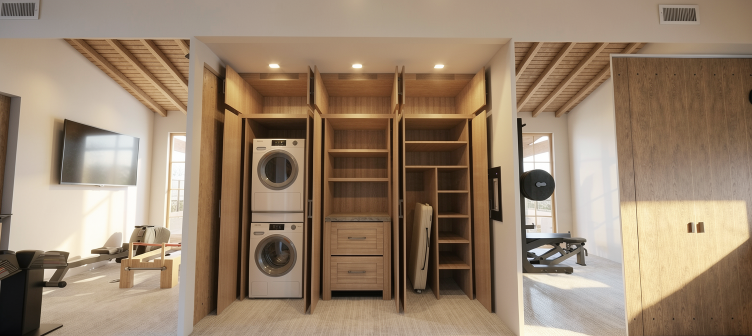 modern kitchen interior sleek design soft natural lighting warm and cozy atmosphere white walls and cabinets smooth white countertops with khaki green base cabinets a wooden dining table with a natural oak finish and gloss white top white eames style chairs with wooden legs casting soft shadows on a polished stone floor in a matt muted beige tile a matte black pendant light above the table for an industrial touch minimalist decor with a few ceramic pots in muted earthy tones and a vibrant green snake plant for a touch of freshness stainless steel espresso machine with a brushed finish on the countertop reflecting subtle light large windows with black frames creating a contrast and allowing daylight to illuminate the space