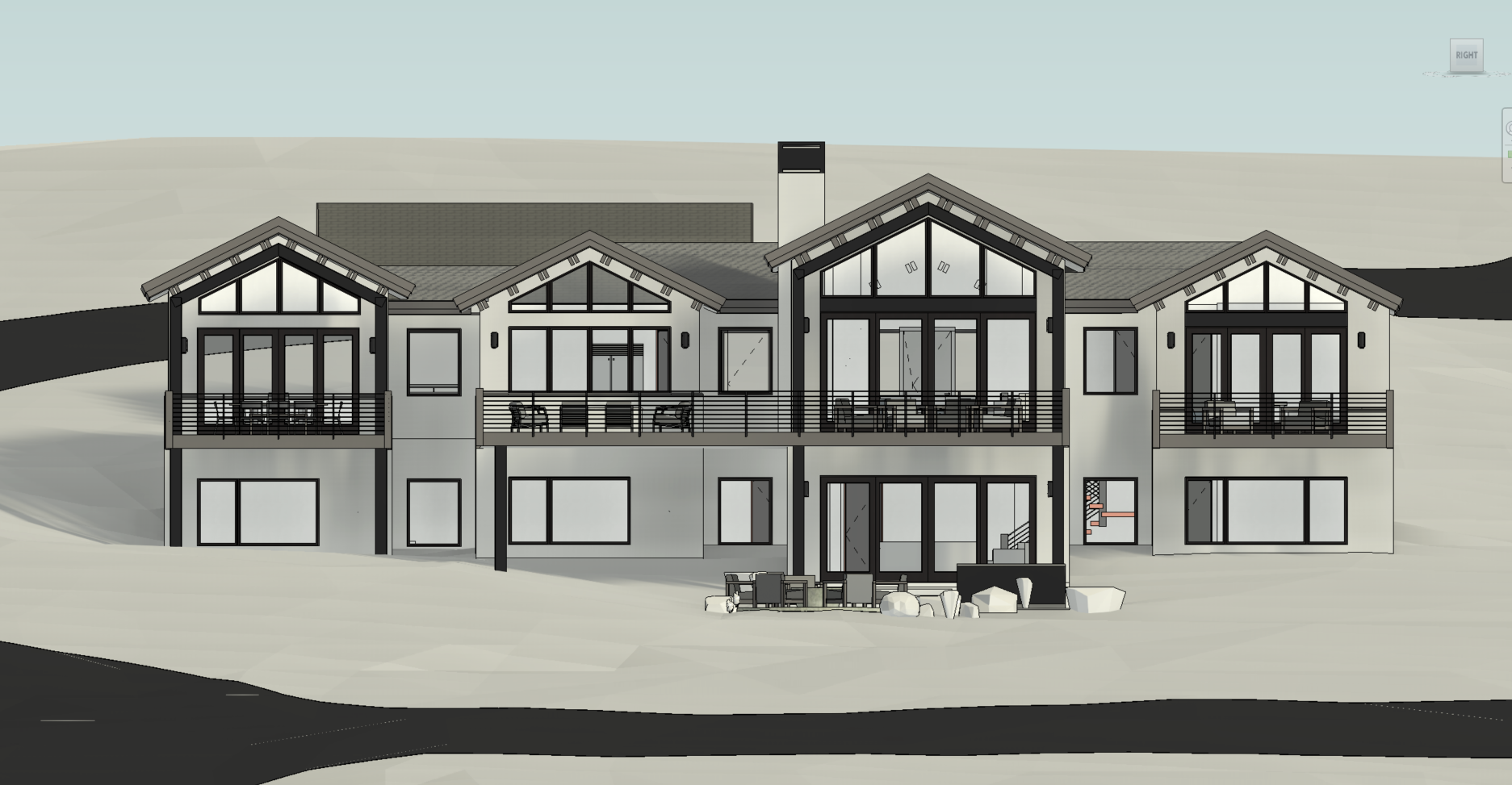 exterior shot dense pine forest stone and wood mountain traditional winter architecture