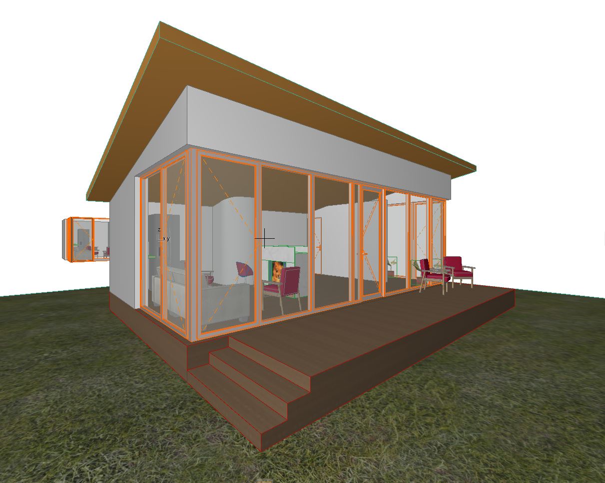 a luxury modular house retrat the bed is on the center of the wall with nightstands on each side and different bed side lamps on the right there is large corner window and a hidden bathtub behind the wall with the bed you can see the bathtub partially the floor under the bathtub is covered with small white stones and the bathtub is surrounded by tropical plants on the left side of the bed there is the door for the bathroom the floor of the bedroom is made from hardwood floor natural tone with cracks and wear areas to look more realistically the walls are cladded with a with a bumpy textured surface that looks like sand dunes beige and earth tones design the rooms must look like a very instagram post ready bedroom there are hidden led strips in the wall on the right side there are very large floor to ceiling windows and there is warm sunlight with warm shadows the roof is slanted on the left is lower and on the right is taller all elements have sharp details the bathtub is on the same level with the bed the exterior is claded with beige textured walls there are plants around the terrace there is furniture on the terrace sharp details on all elements