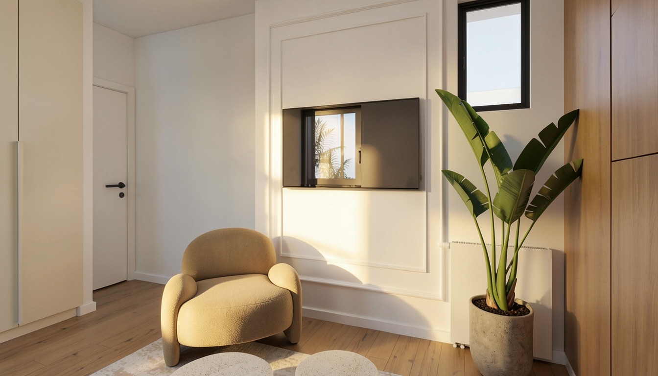 convert this floor plan into a realistic isometric 3d view of a full house show the space from an elevated angle with furniture walls and details visible convert 2d floor plan to 3d important strictly follow the provided plan no changes to layout or proportions view top down 90 style real estate developer style light minimalism industrial colors materials light tones white grey beige stone wood accents flooring tile hallway bathroom kitchen living vinyl bedrooms details clear walls doors windows minimal furniture for scale render clean simple easy to read no clutter no decor focus use the same furniture as shows on the plan do not change the orientation of the floorplan