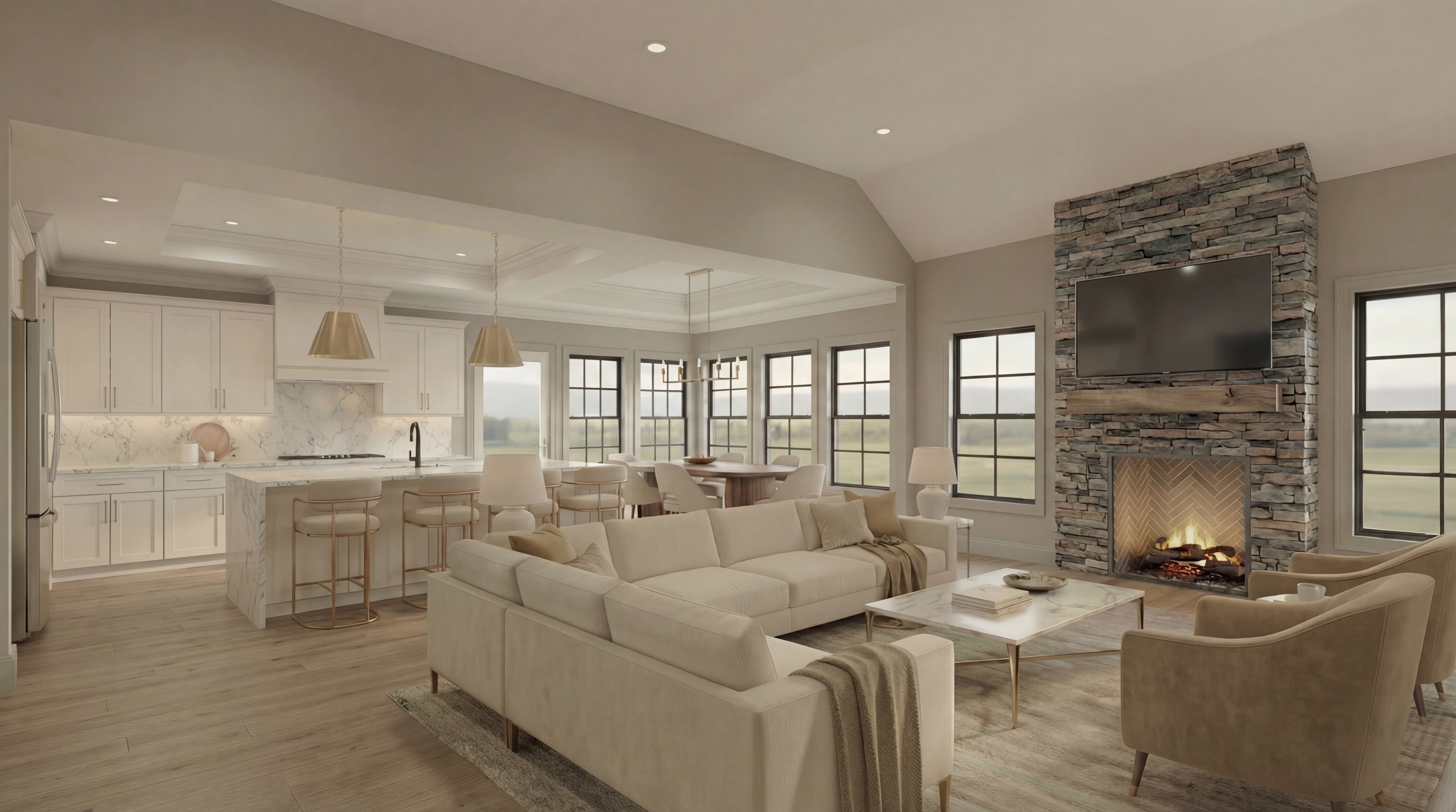 reimagine this interior without changing design just colors and funrishings