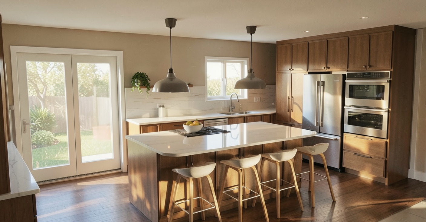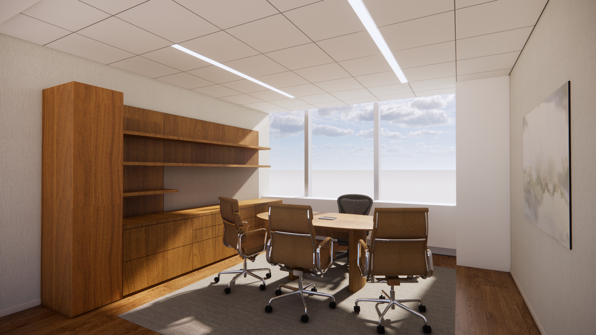 provide photo realistic rendering keep all elements proportions and finishes as they are include new york midtown view from 43rd floor