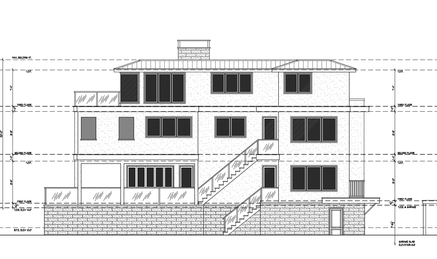 modern exterior features beach home with white flat panels
