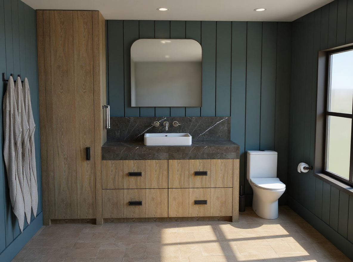 modern residential building with a geometric grid fa ade warm brick cladding metal railings deep balconies minimalist architectural lines soft daylight realistic textures subtle urban background human scale details photorealistic 8k architecture