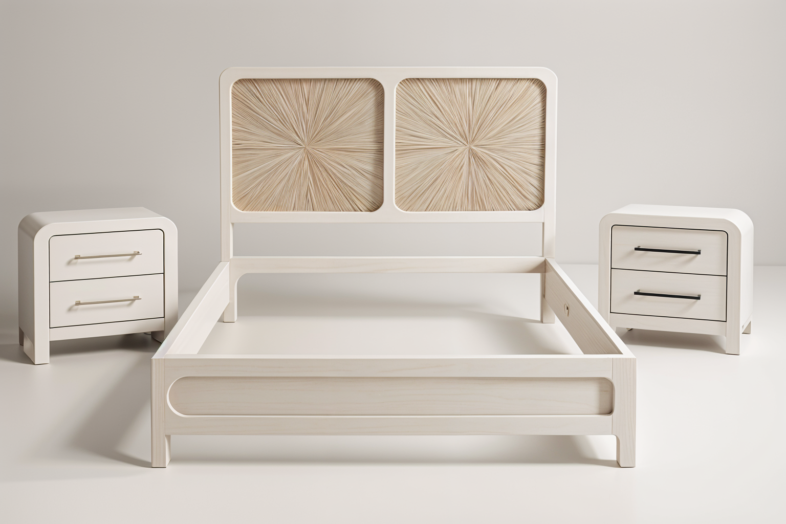 new urbanism exterior shot luxury home with walls painted in white and neutral greys it has glass windows and tropical garden include short palms and other lush tropical plants in the foreground garden and tall palms in the background the sky should be at 2 00 pm with clouds typical of a summer sky in puerto rico lighting should be 2 00 pm in puerto rico northwest architecture
