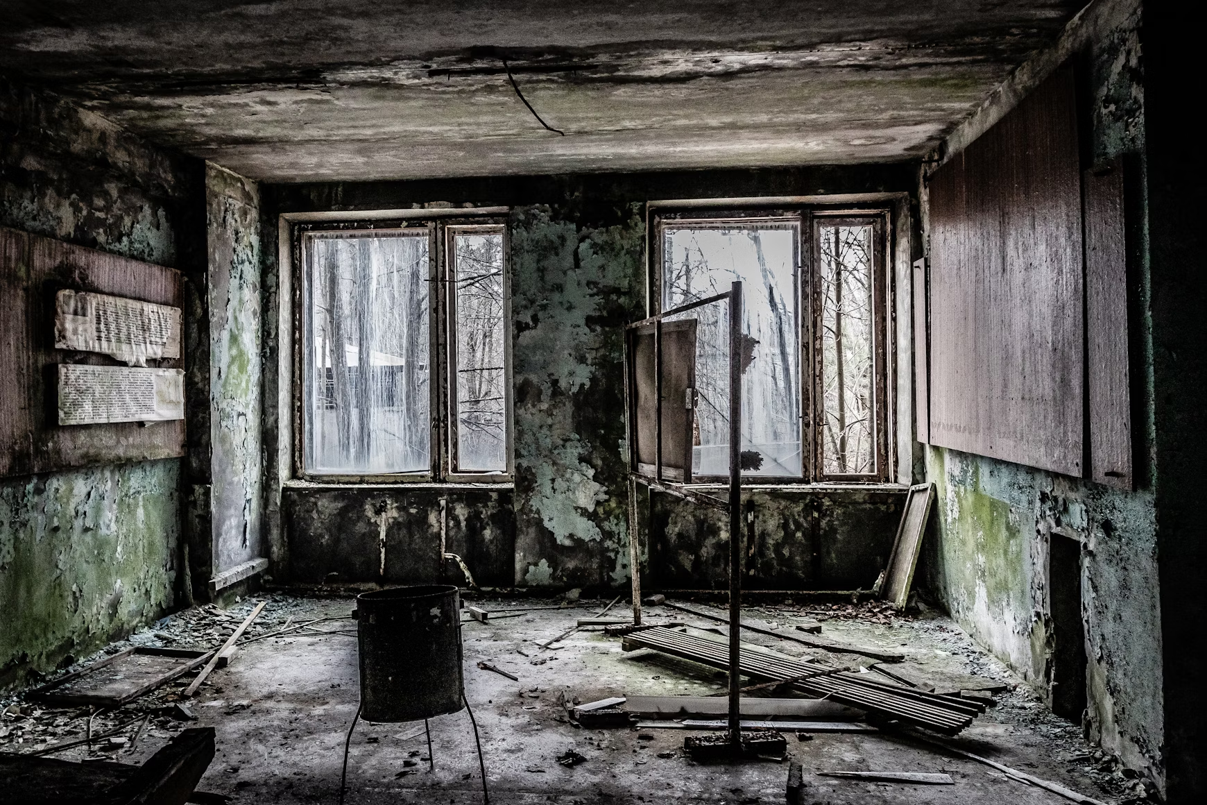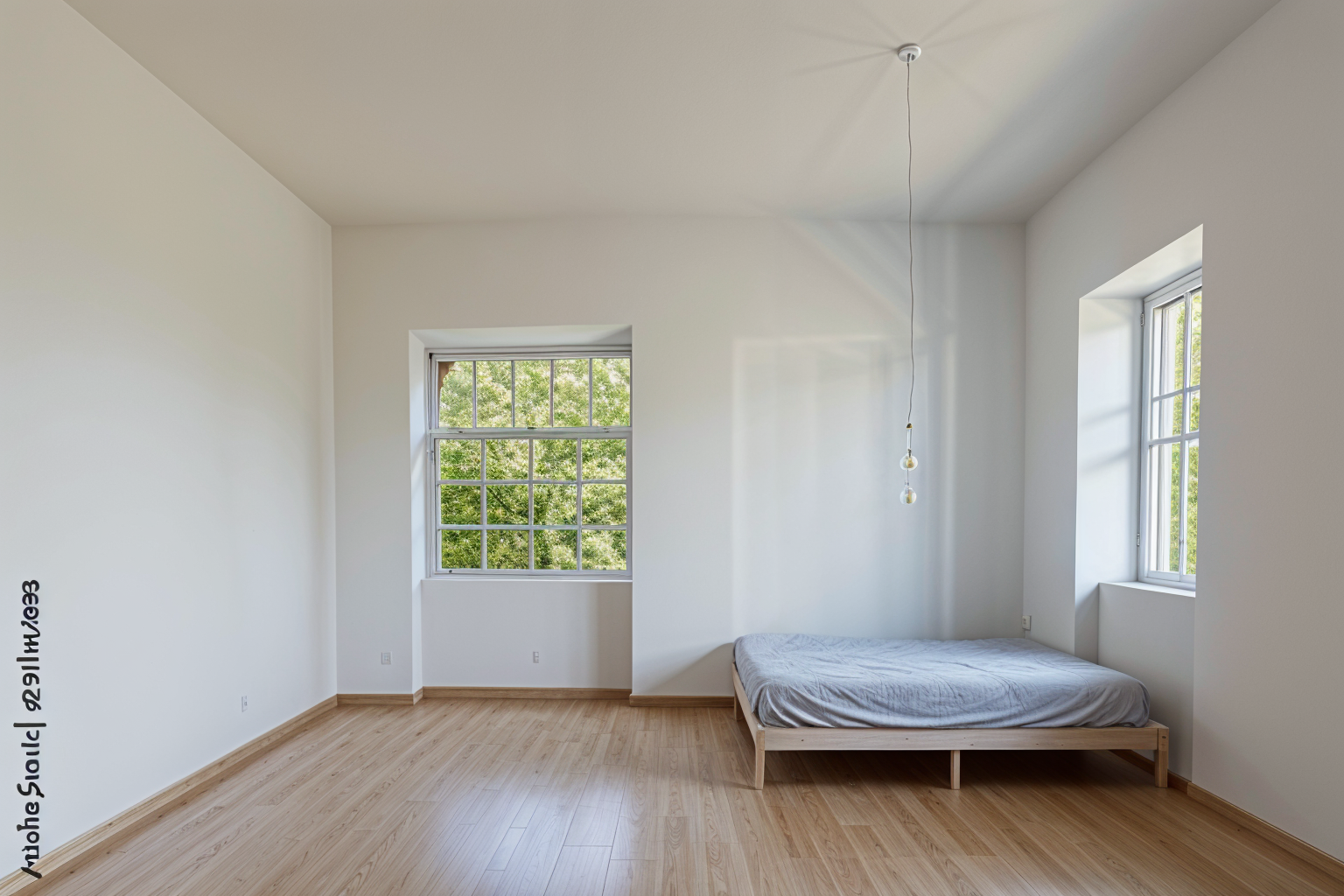 clean this up and furnish it like a modern room paint the walls white keep the structure of the walls and windows same don t change the room remove all the wires make it aesthetically pleasing