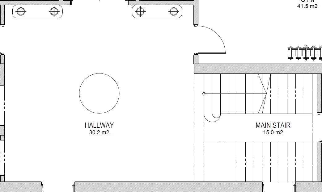 create an image from this floor plan each side is 5meters long and the ceiling height is 3meters the veiw point to be at the bottom centre to the hallway the stairs on the right side of the plan to be shown a little bit of the image include the doors openings as per the plan each ceiling door height is 2 2 meters