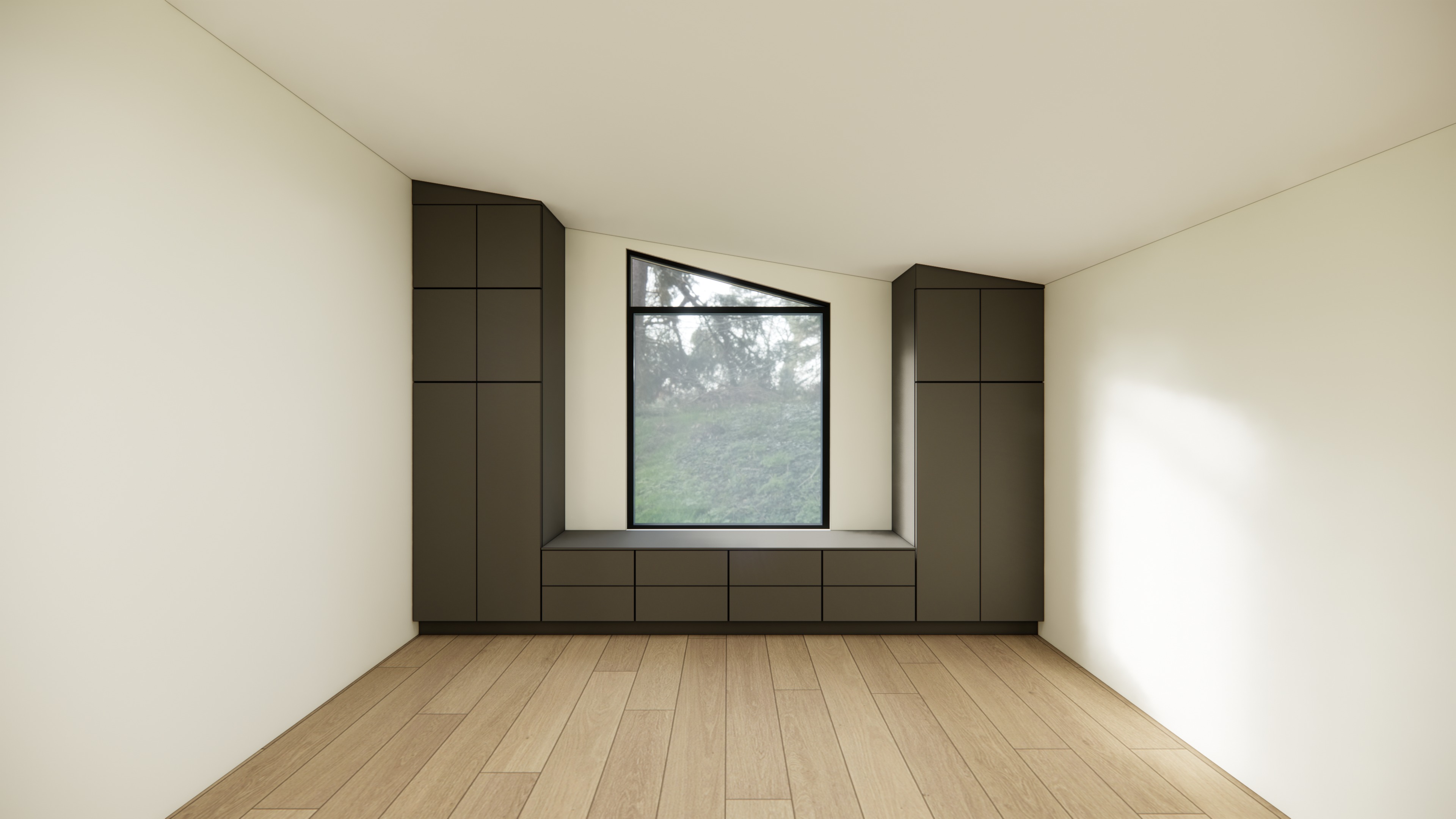 the room should be well illuminated please include two modern sconces installed onto the inside of each tall cabinet the sconces will be facing each other