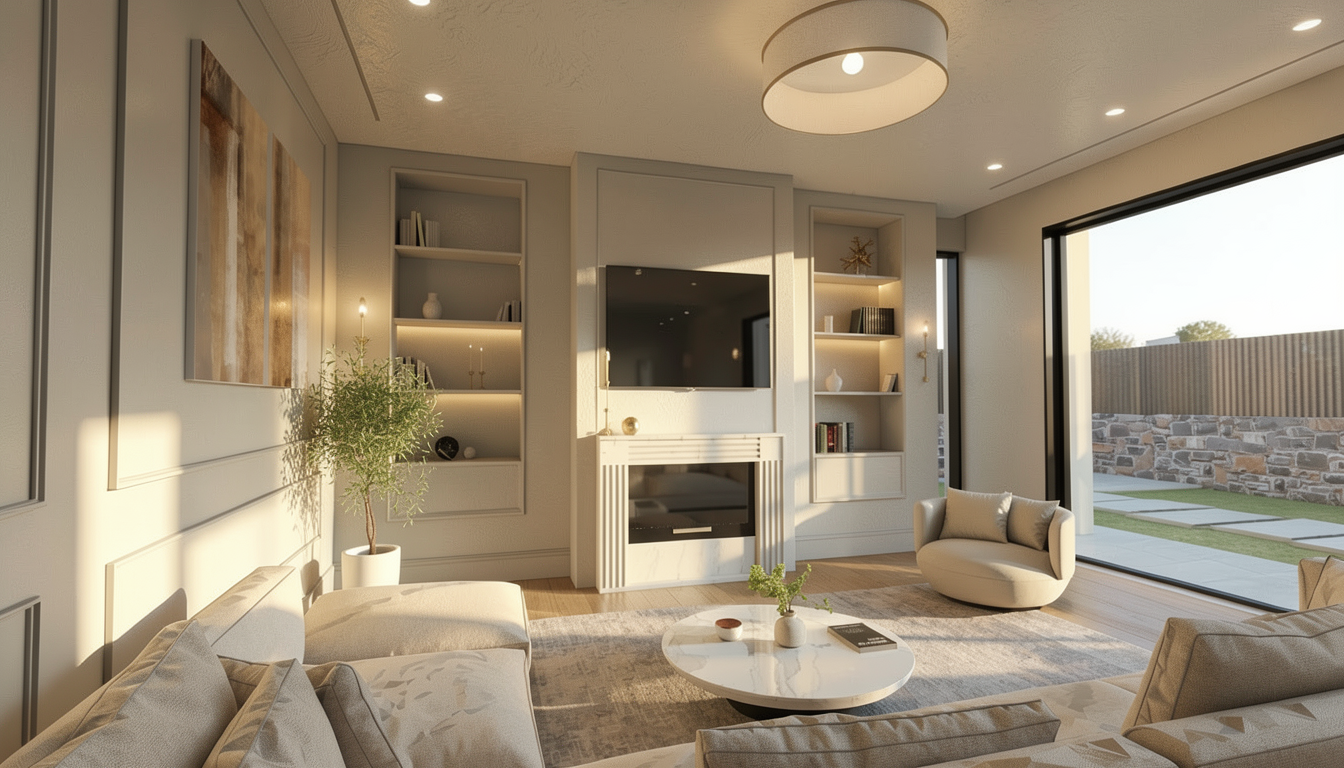 just more realistic with a little more light without change the materials the textures or the furnitures a little more light in the left side next to the tv make a texture surface in ceil light make the lights remove the light of the wall furnityre that you get in and make the inveroment more lightly