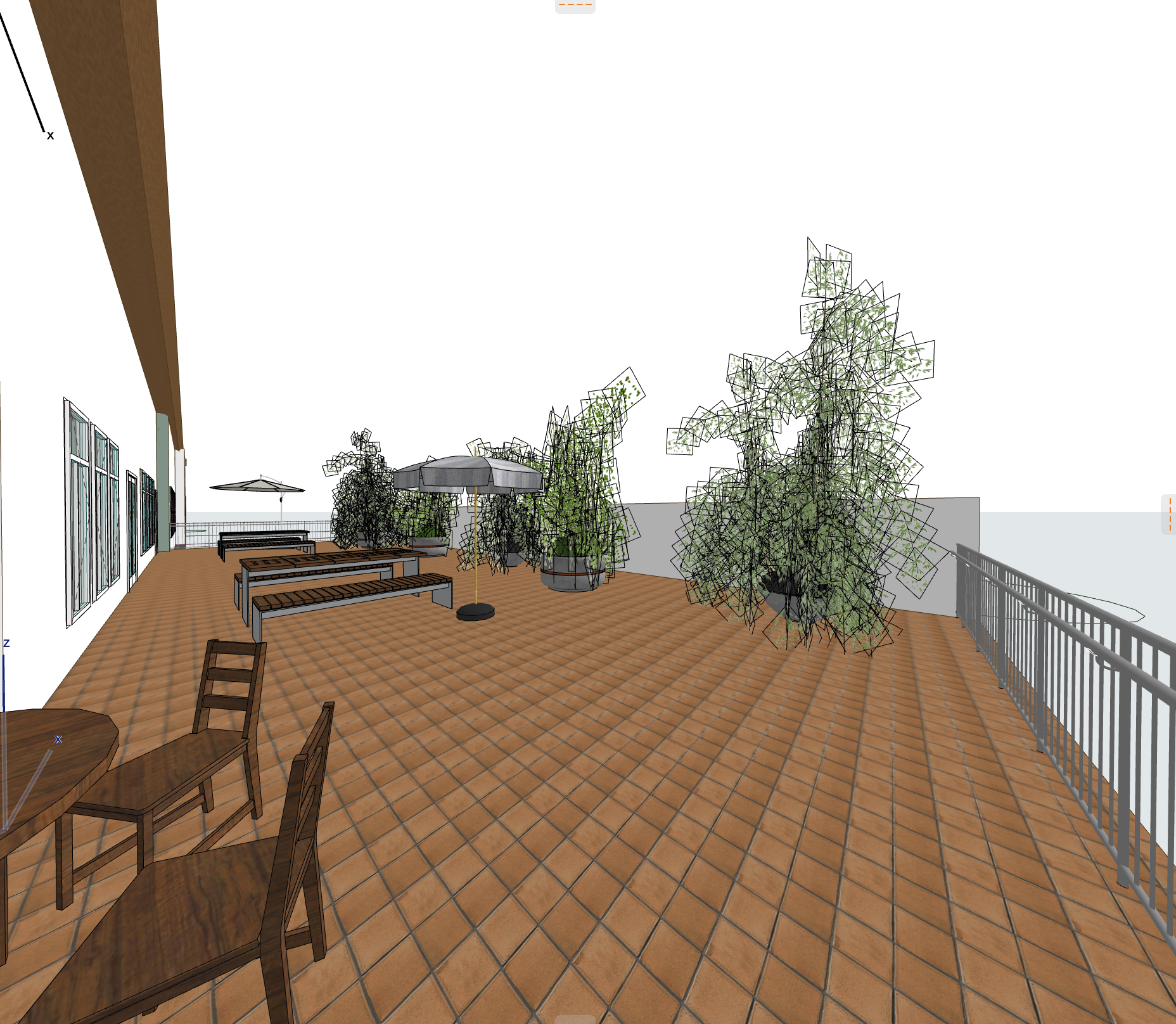 outdoor area of a office space the wood is a light oak keep true to the image keep the wall colours the same