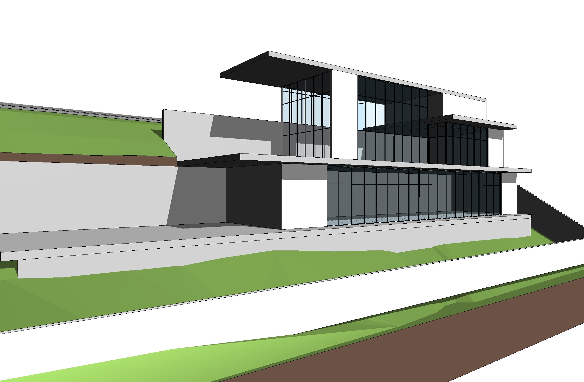 a modern west hollywood hills house on a steep hill with white smooth walls expansive glass windows and railings with california native landscape