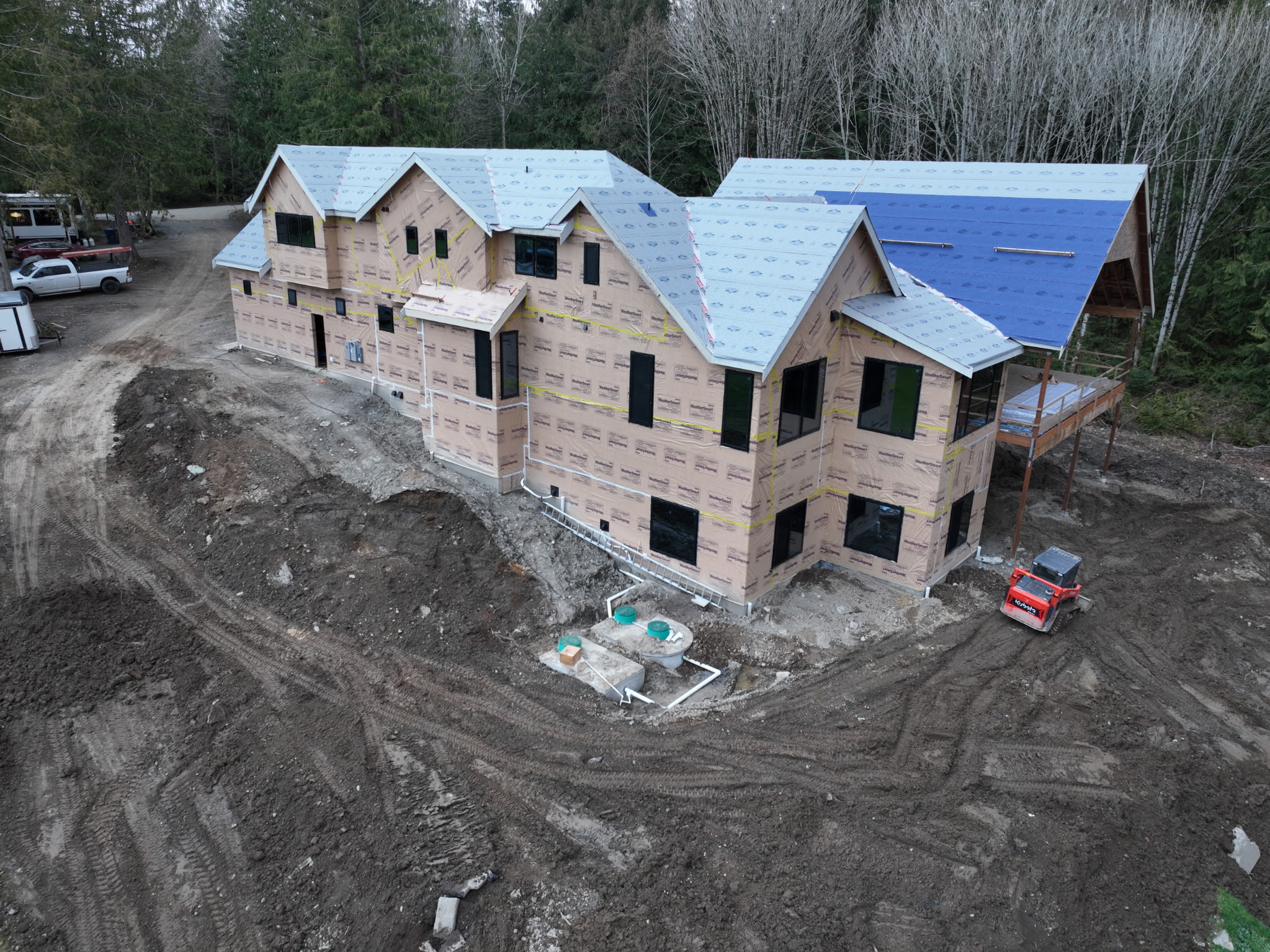 finish the house with dark beige siding stonework and paneling add simple landscaping keep in mind that this is a side elevation not the front