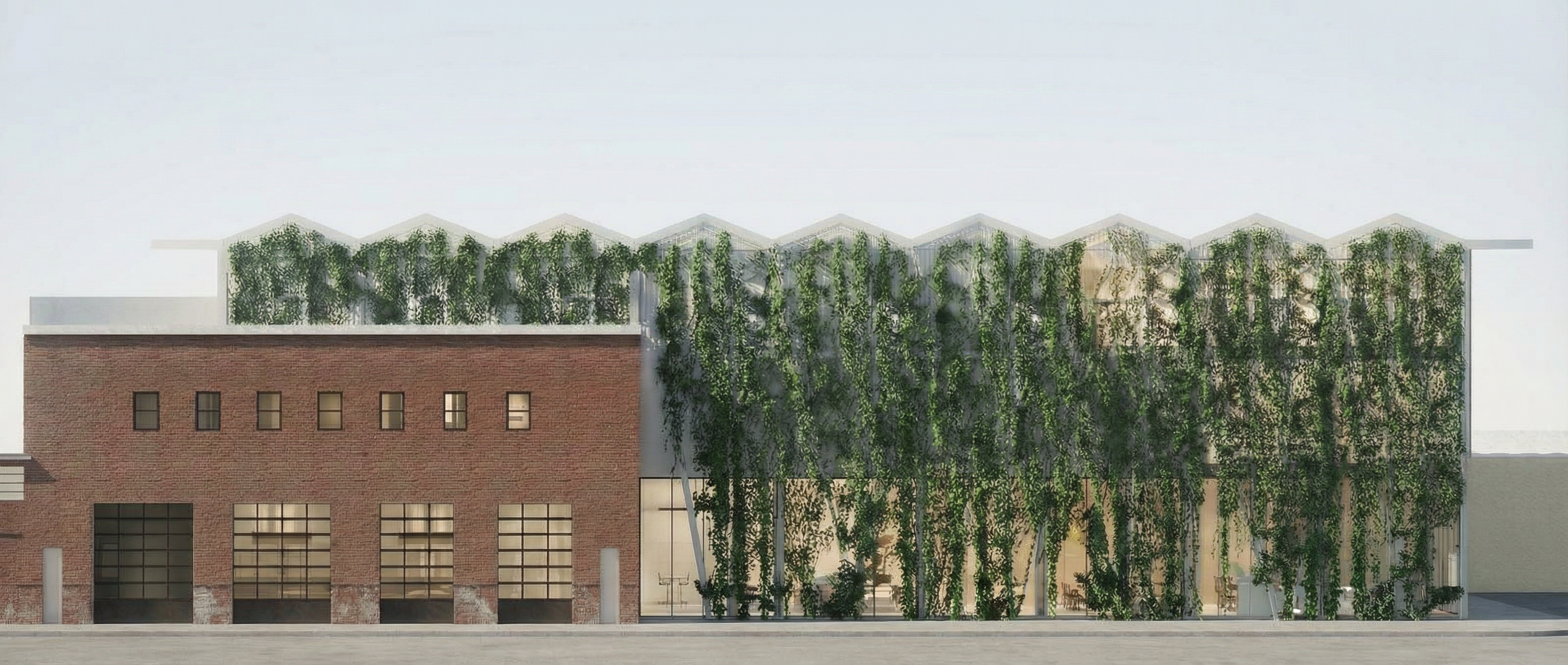 background that shows a realistic small american town horizontal street and greenery add fruits vegetables and flowers to brown baskets fill shelves add decor to coffee table add string lights and exterior lighting fixtures