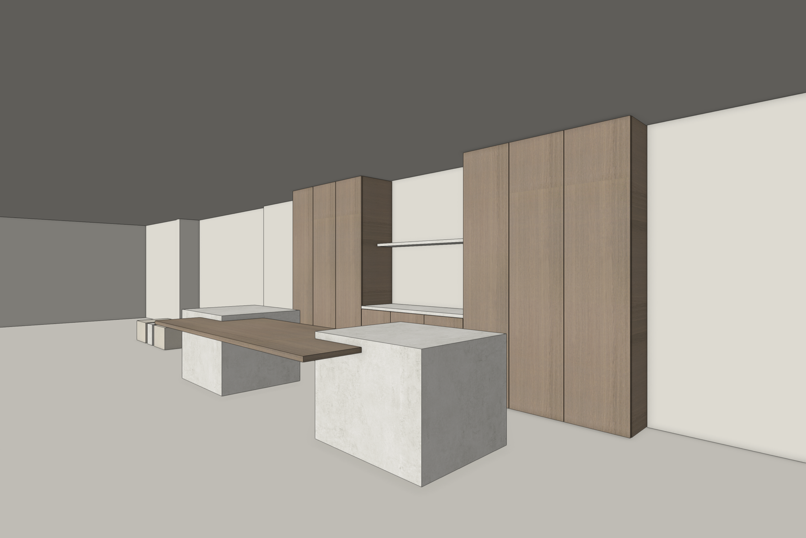 the same angle make it photorealistic ad a few plants chairs on the left side of the island and dont change the design