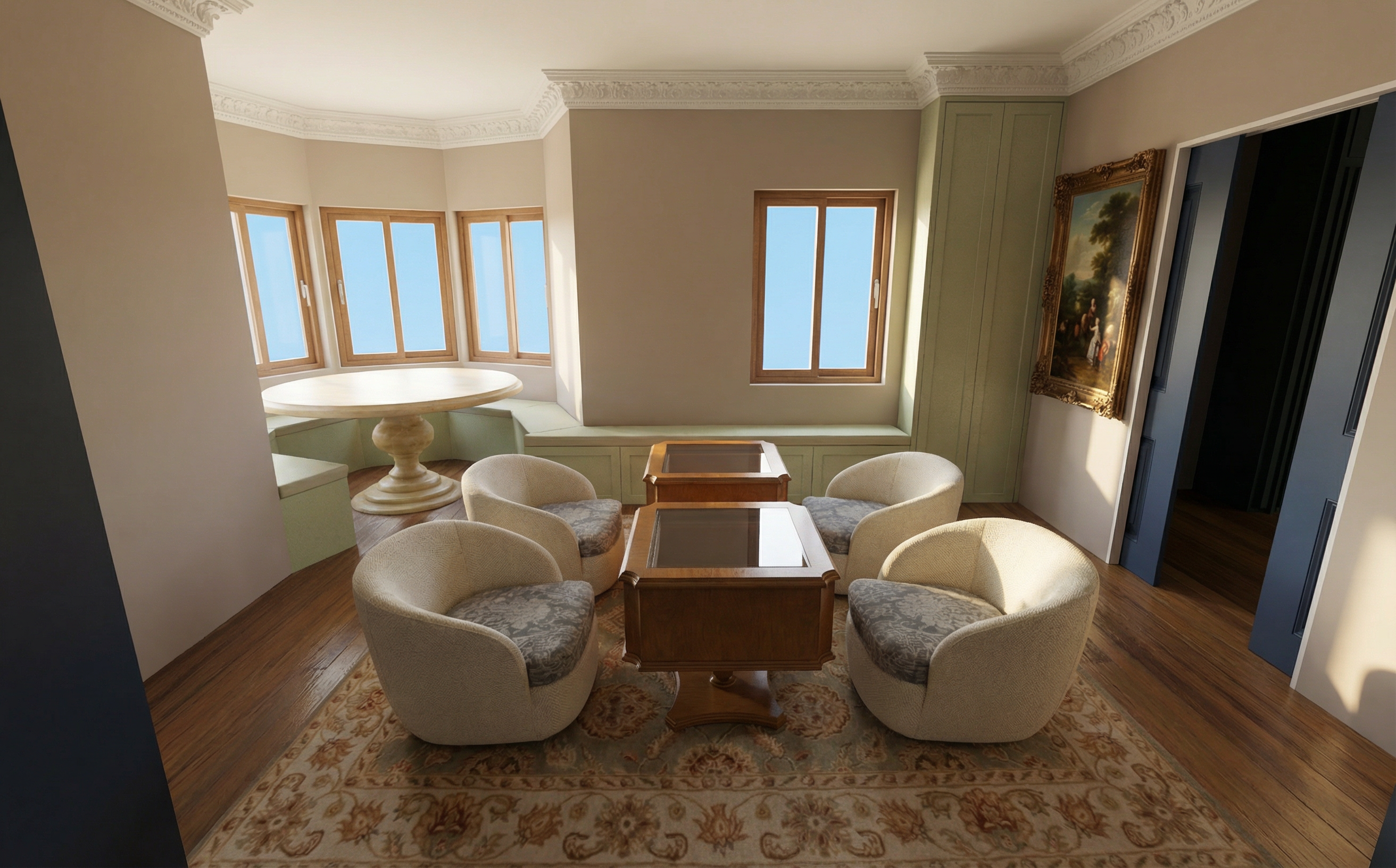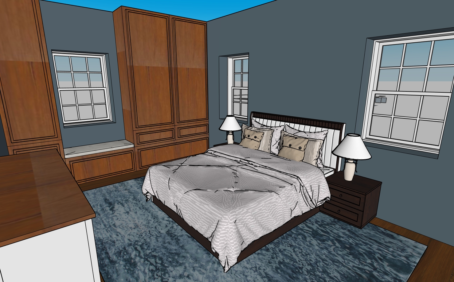 colonial revival crown molding and baseboard painting above bed
