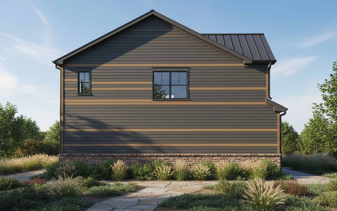 light wood facade steel roof