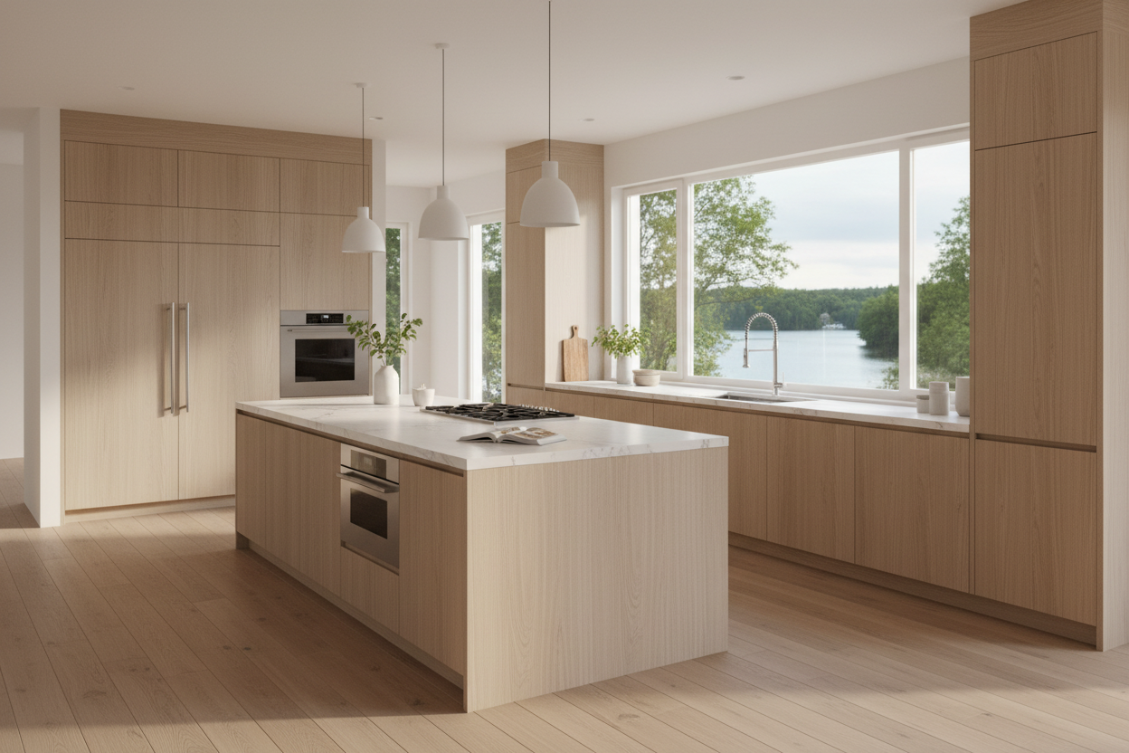 modern interior as in sketchup model minimalist design neutral colors natural materials clean lines large windows soft natural daylight add interior light high resolution ultra detailed sharp focus crisp edges photo realistic architectural visualization realistic lighting realistic shadows less contrast