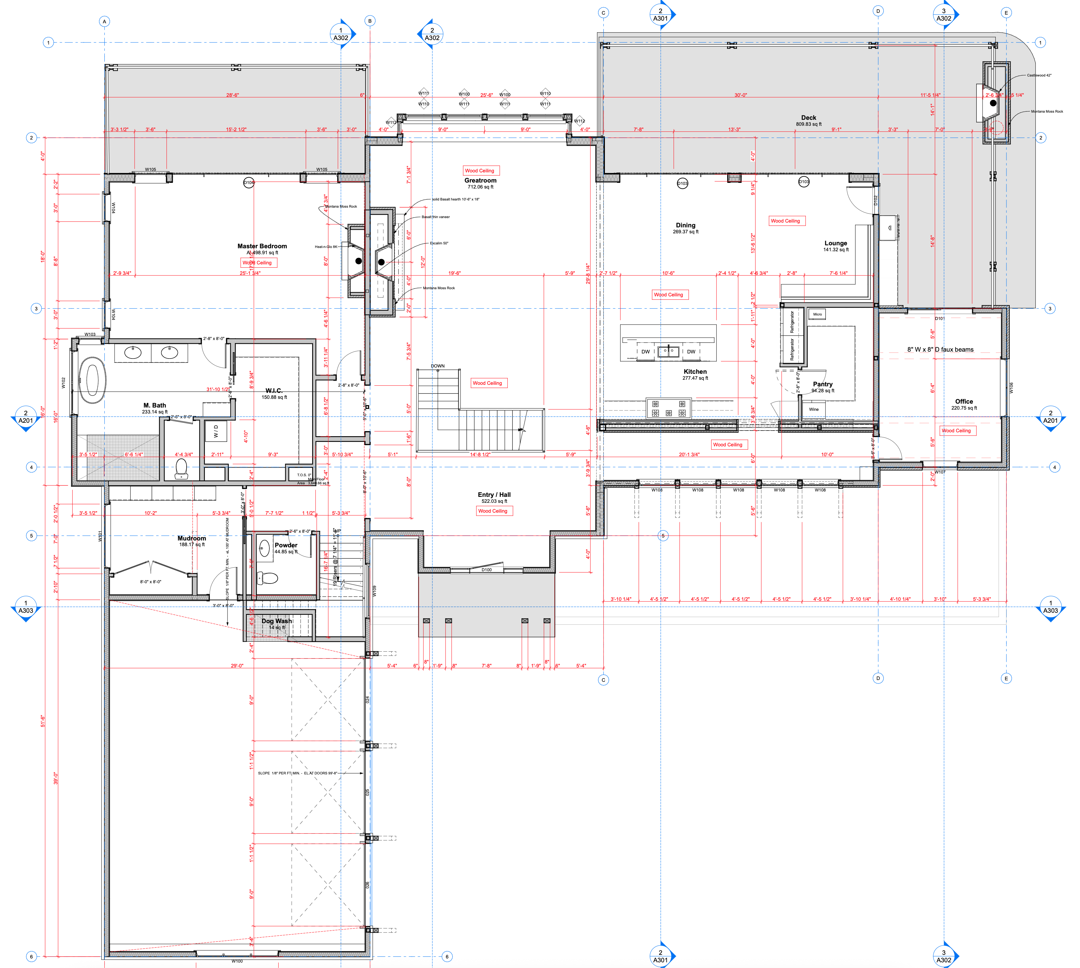 4000 s f colored architectural presentation plan view with wood flooring and tile in bathrooms black background add furniture two suvs in the garage