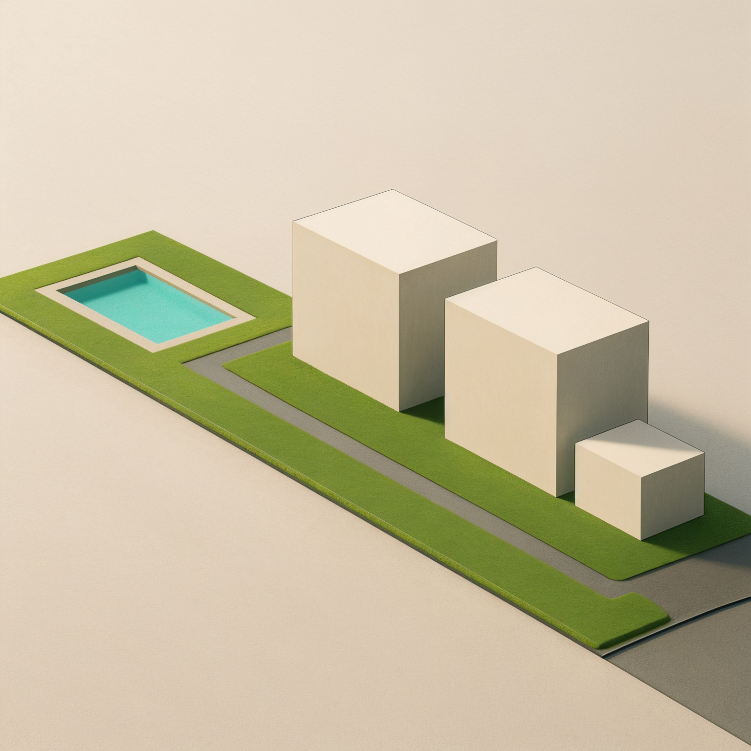 modern perspective shot render an image based on this massing project is a multi storey indoor sports complex with an outdoor swimming pool at the back background is lush tagaytay rolling terrain with pineapple plantations photo realistic style wide angle shot with some people and cars for scale architecture