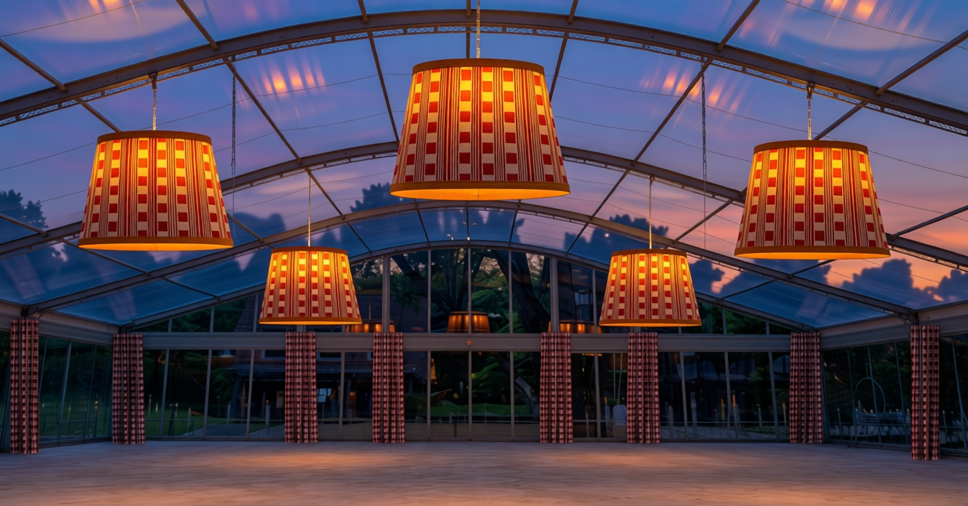 night time with the drum shades lit dimly