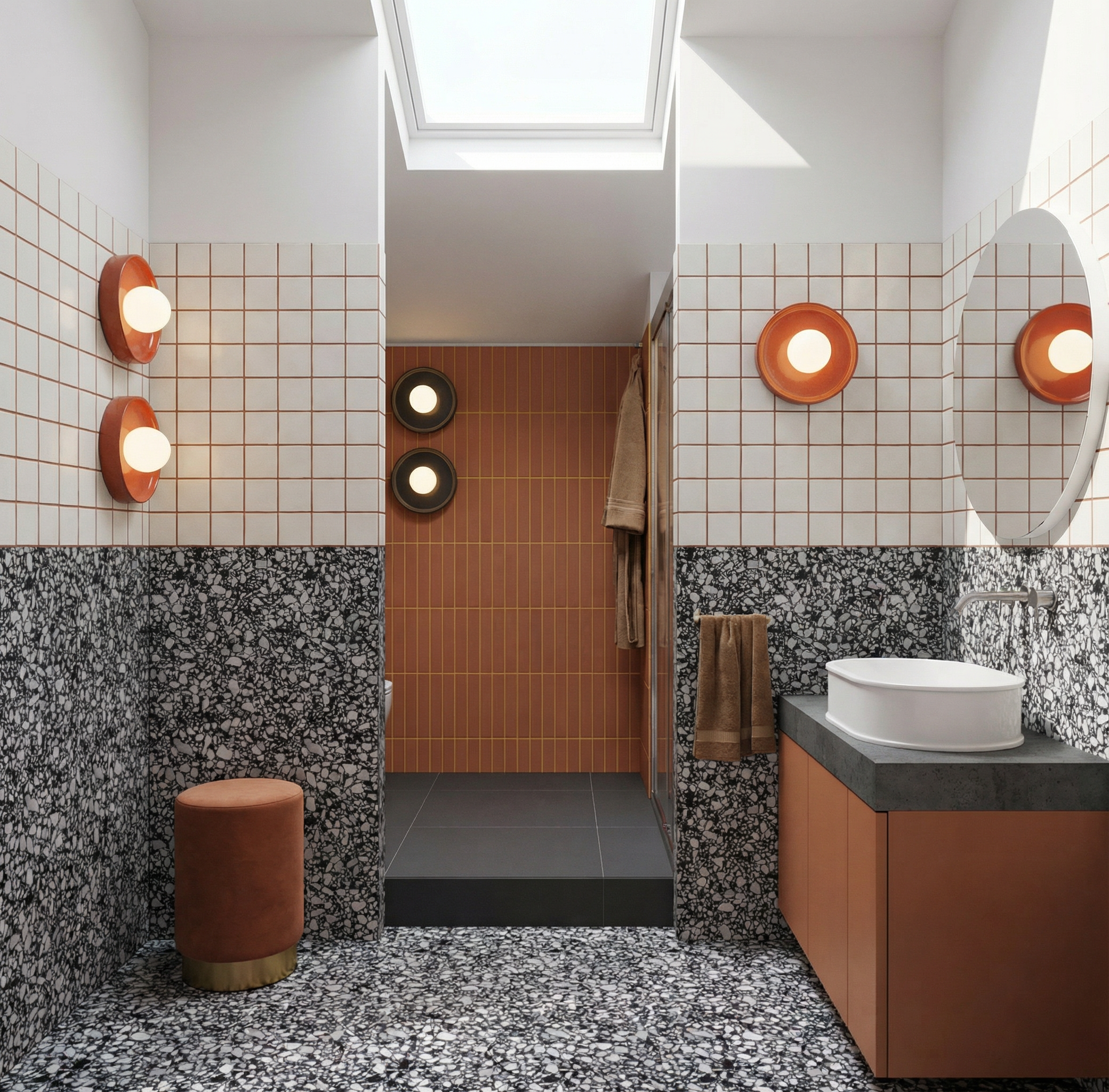 as a continuation of the exterior fa ade this area features an outdoor living and dining space with a travertine dining table as the central element a pergola in a soft sand tone is positioned above providing shade while maintaining the light neutral aesthetic of the composition behind the main view a built in sofa is integrated into the structure finished with off white waterproof cushions arranged in a clean and elegant manner on the right side there is a built in bbq in a beige finish detailed with linear wooden handles as shown in the reference stone on the wall behind the bbq and sofa