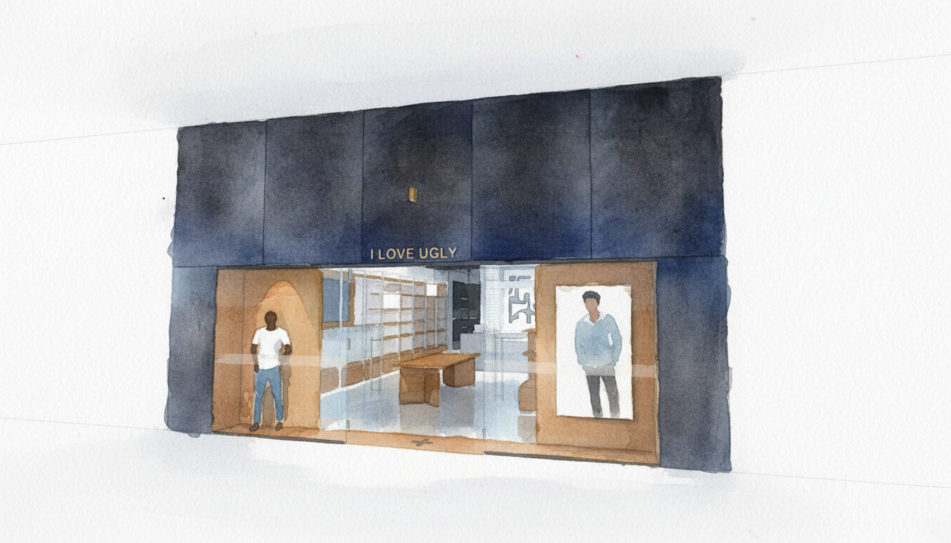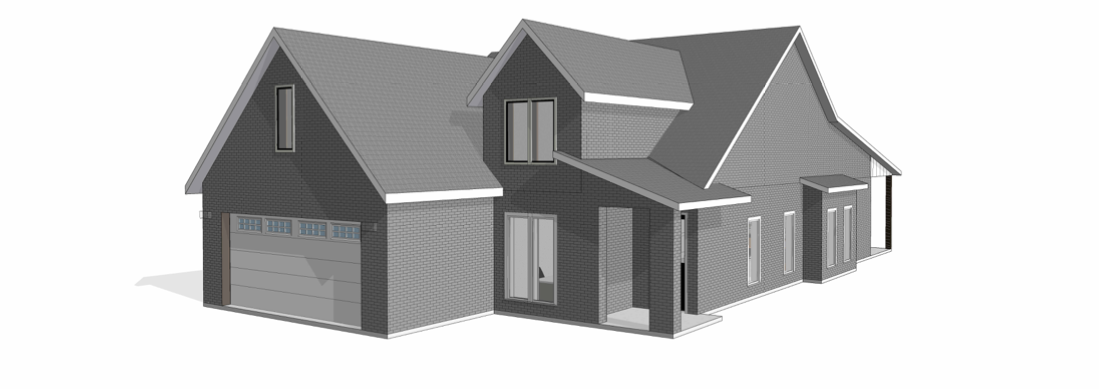 the brick is a creamish color brick with black exterior windows provide landscape and sunset backdrop