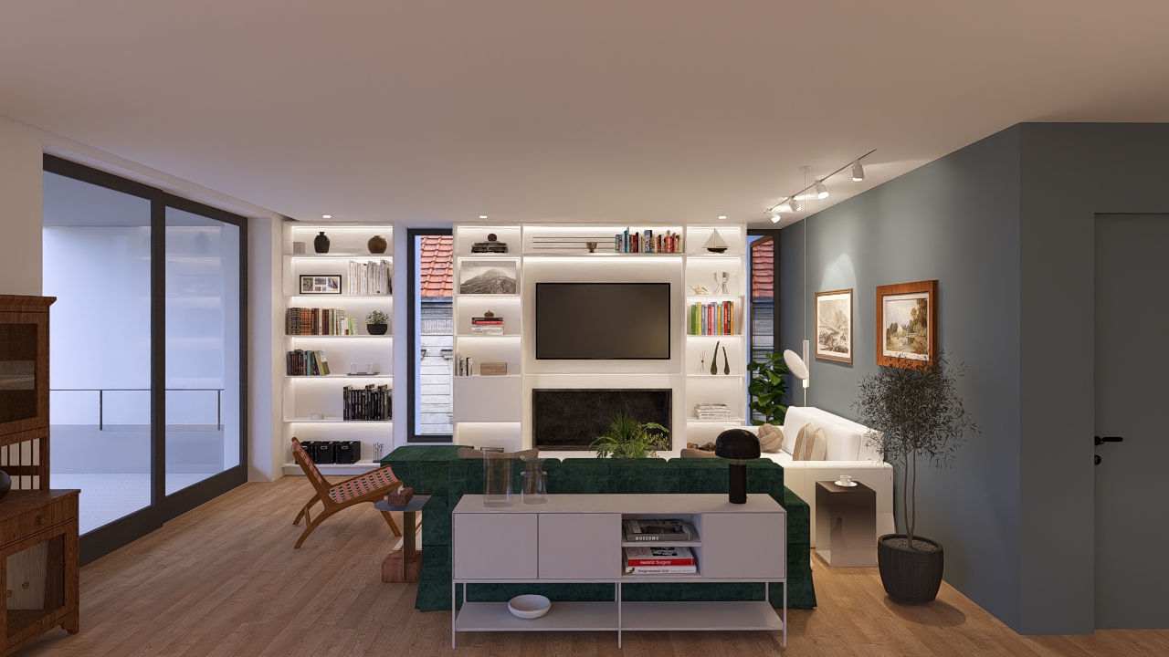 fix spotlight rail on the right so that it is nicely lighting the painting on the wall