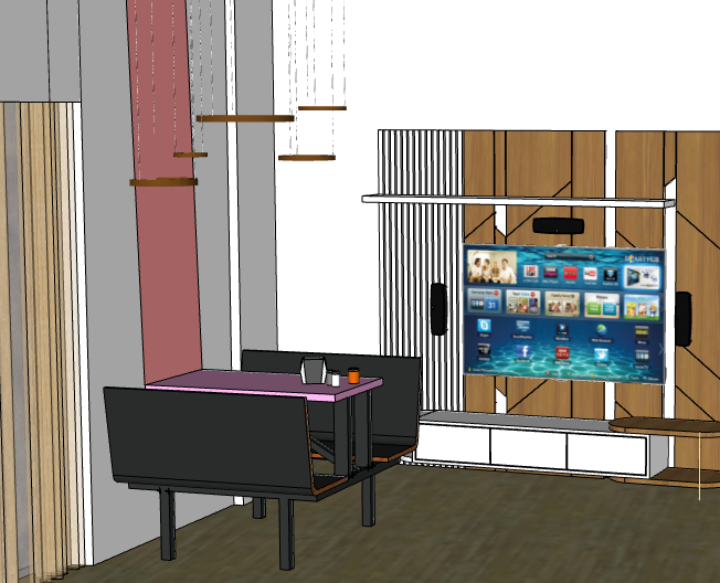 mediterranean revival interior shot lunch table with brown benches curtains white walls architecture