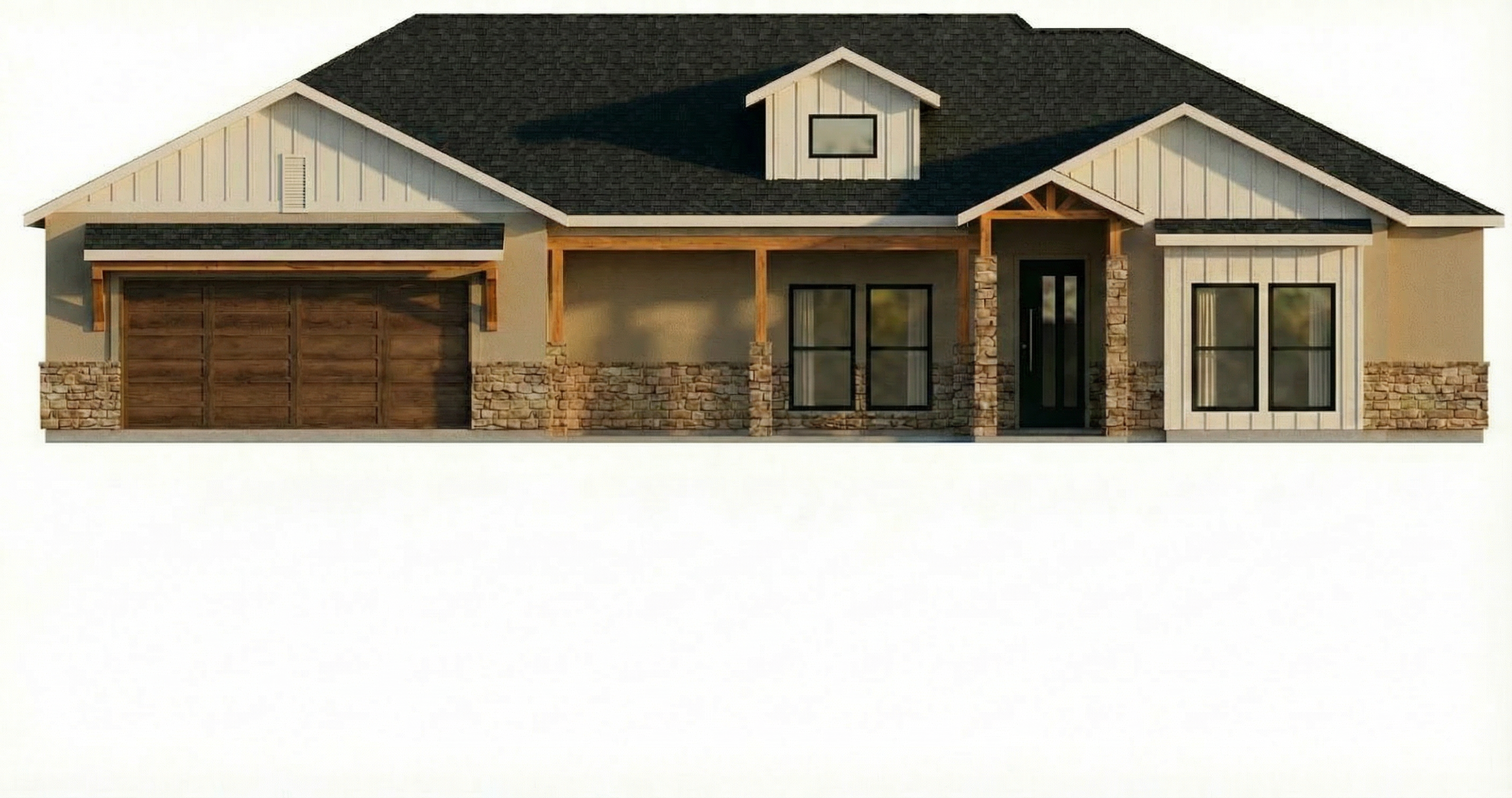 the glazed doors are a lot narrower they are only 1 2m overall with more cladding either side keeping everything else exactly the same as source image materials and colours and building shape exactly the same