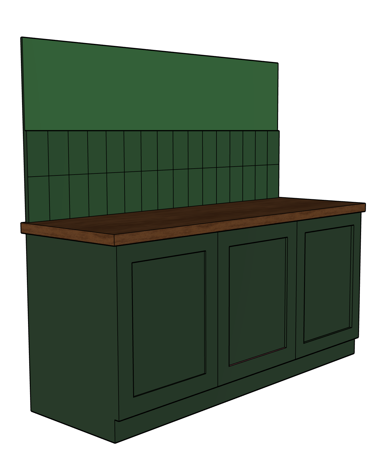 glazed dark green tiles dark dark wood work surface dark green painted cupboards