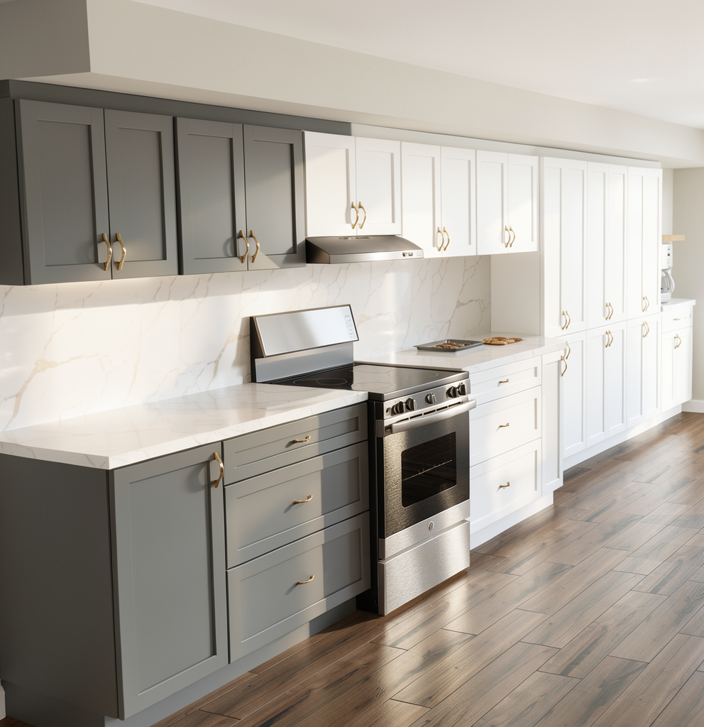 photorealistic luxury media room interior inspired by modern architectural built ins flooring herringbone light white oak wood flooring matte finish subtle natural grain soft neutral tone feature wall is symmetrical and minimal center section framed sheetrock wall painted soft warm neutral white with a slight creamy undertone a 75 inch samsung frame tv mounted flush and centered below it a recessed 60 inch linear electric fireplace with a clean black opening and realistic flame ceiling 3 inch drop soffit above the built in wall concealed led strip integrated inside the soffit on the left and right sections only creating a soft downward wall wash no visible fixtures crown molding refined stepped crown profile similar to garden state lumber step 7 clean architectural lines not ornate or traditional painted to match the ceiling left and right shelving niches full height recessed niches with light natural oak wood veneer back panels vertical grain floating wood shelves in matching light oak veneer wood tone should resemble modern european or scandinavian light oak not dark walnut and not reddish lighting inside niches one concealed vertical led strip recessed in the back inside corner of each niche washing down the wood veneer panel evenly no under shelf led strips no puck lights lower cabinetry flat slab front base cabinets and drawers across the full width light white oak veneer matte finish minimal modern detailing no framed doors no shaker style no visible hardware styling minimal decor clean architectural calm luxury balanced warm lighting at approximately 3000k contemporary european interior aesthetic camera straight on centered elevation view no foreground furniture no dining table no sofa blocking the view negative prompt no framed cabinet doors no shaker cabinets no dark walnut no reddish wood no traditional crown no ornate trim no recessed ceiling spotlights no under shelf led strips no heavy yellow lighting no dining table no furniture in foreground