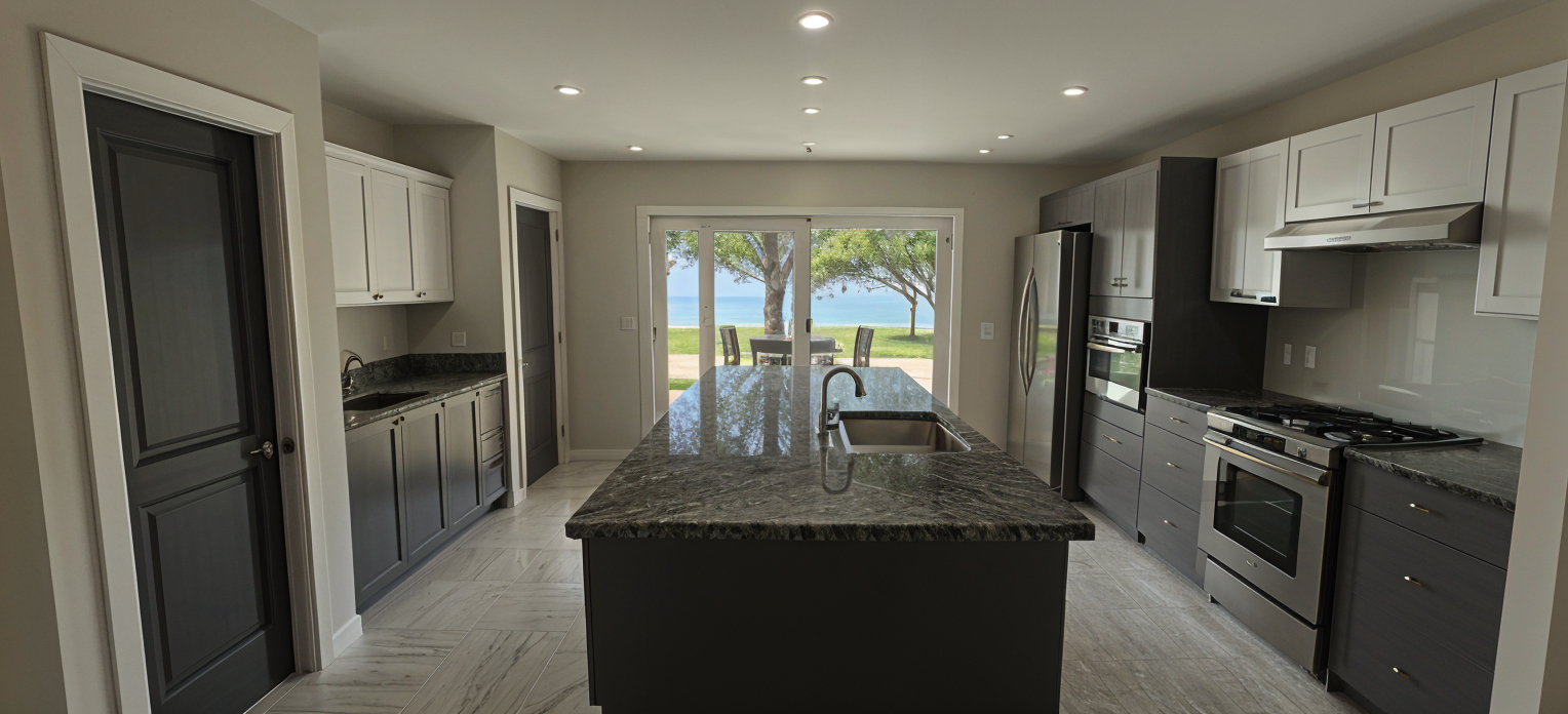 exterior shot transitional architecture white walls modern stone straight railings at balconies realistic no keystones at arches architecture