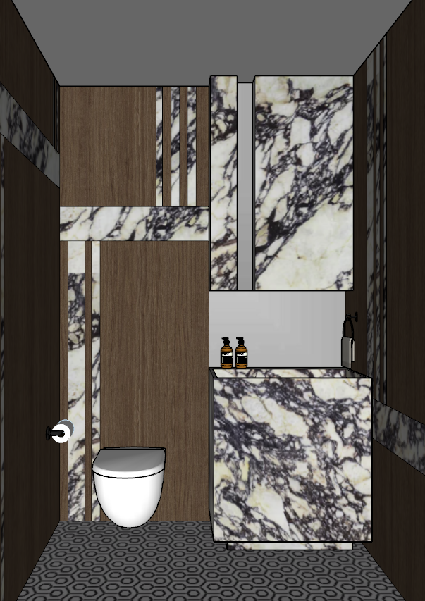 remove the sunlight the material above vanity is mirror remove that door handle on the left side of the toilet