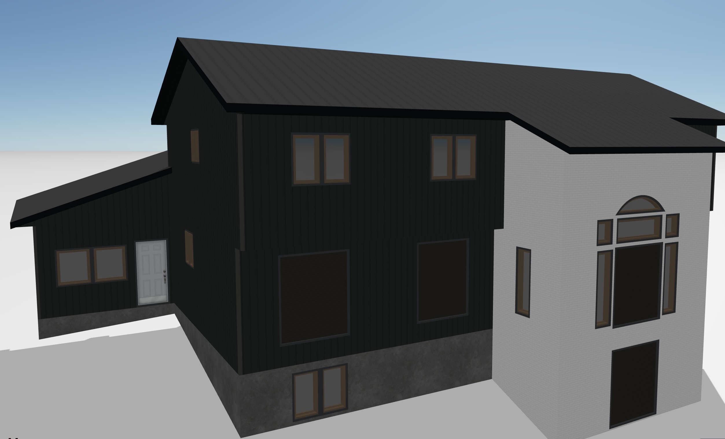 make the white brick painted black keep the house the same shape put a minnesota wooded backround on the image make the trim around the windows andersen terratone make the dark siding united states seamless vertical nickel gap in our carbon color