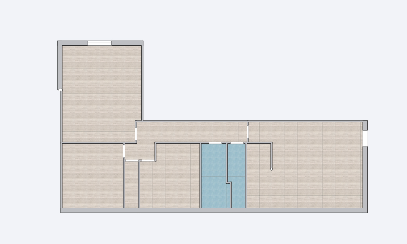 convert this floor plan into a realistic isometric 3d view of a full house show the space from an elevated angle with furniture walls and details visible create a detailed architectural floor plan rendering with a modern aesthetic use warm beige for the wooden floors subtle gray for the walls and soft white for the doors highlight the central rectangular area with serene aqua blue tiles add elegant gray lines for room divisions and a light backdrop to enhance contrast the atmosphere should be minimalist clean and inviting emphasizing simplicity and spaciousness use the same furniture as shows on the plan do not change the orientation of the floorplan