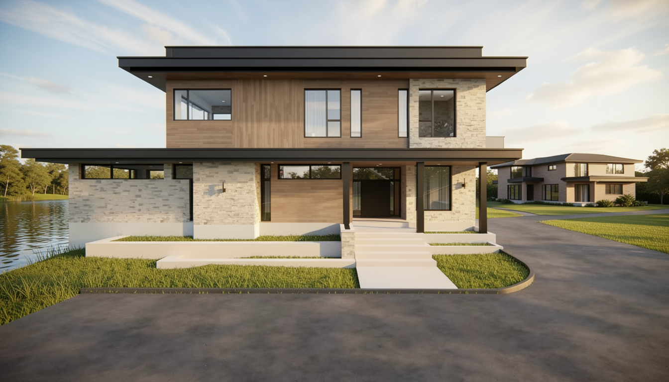 make the desk slightly larger scaling it proportionally while keeping its original design material color and position unchanged duplicate the chair located on the right side of the image same geometry same materials same color same finish place this duplicated chair in the position directly in front of the sofa replacing the existing brown chair the duplicated chair must be identical to the right side chair not a recolor or reinterpretation adjust only the scale and perspective of the duplicated chair so it matches the existing camera angle and depth do not alter the original chair on the right side do not change colors materials textures lighting or any other furniture keep all architecture lighting shadows reflections floor patterns walls ceilings and remaining elements exactly the same no redesign no stylistic changes no enhancement
