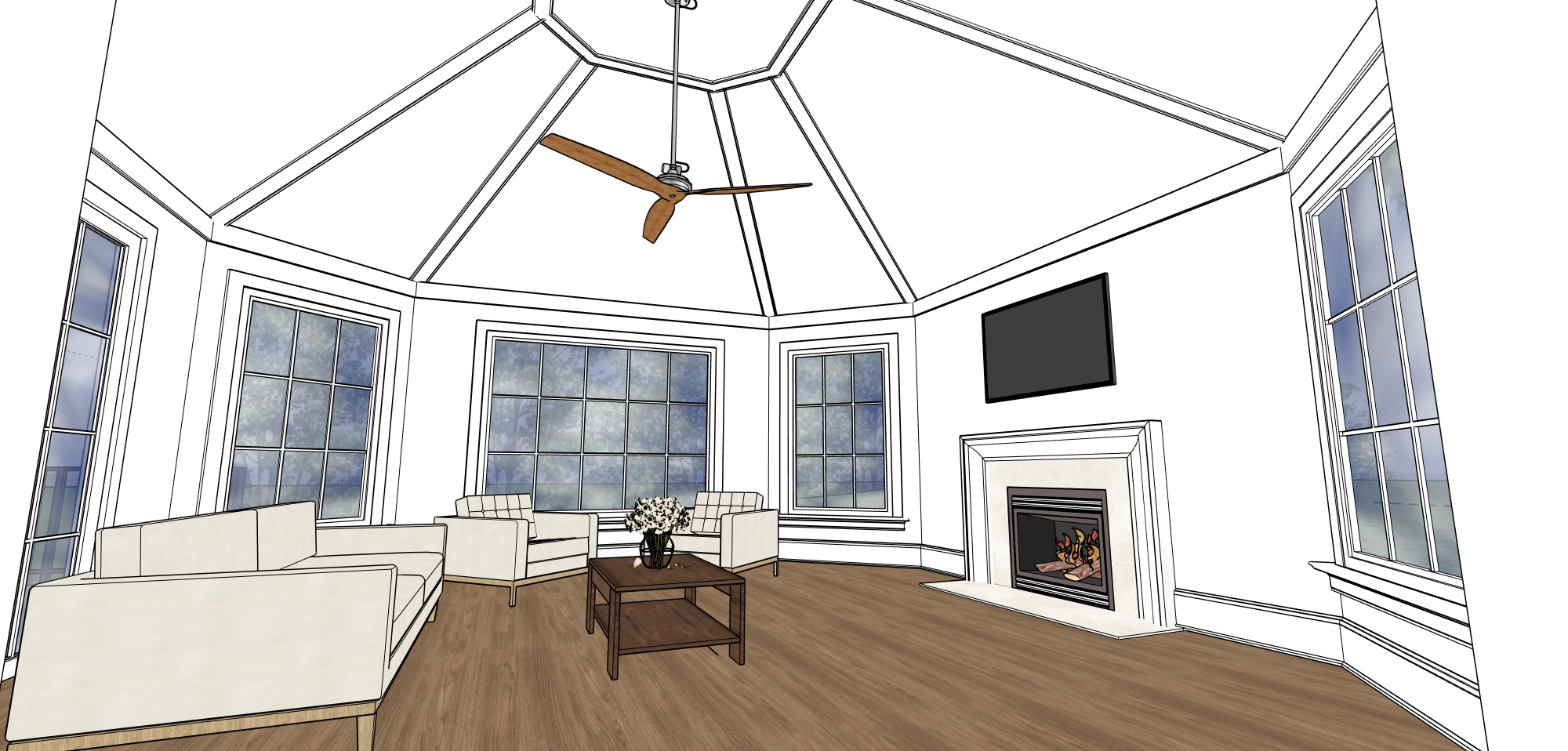 realistic fall bright day navy walls and ceiling