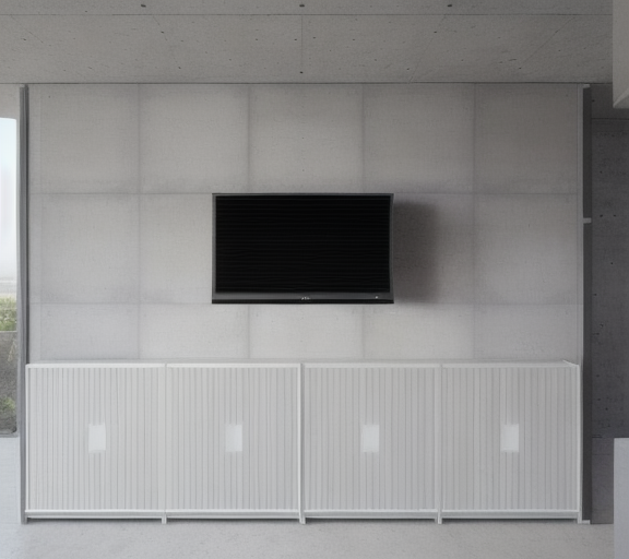make the tv larger grey concrete effect wall panels all tambour units are black incluing handles and legs carpet to be grey architecture
