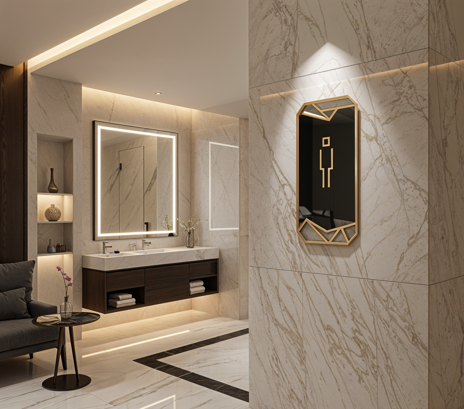 reproduce the previous rendering exactly keep the roof siding windows columns colors and lighting identical only modify the tall vertical element that splits the gable roof behind the covered drive clad it in warm natural horizontal ledgestone masonry beige tan and soft gray blend with a linear stacked texture add subtle ground level uplighting to softly highlight the stone texture creating a warm and inviting focal point without harsh glare do not change any other part of the building site or lighting scheme architecture