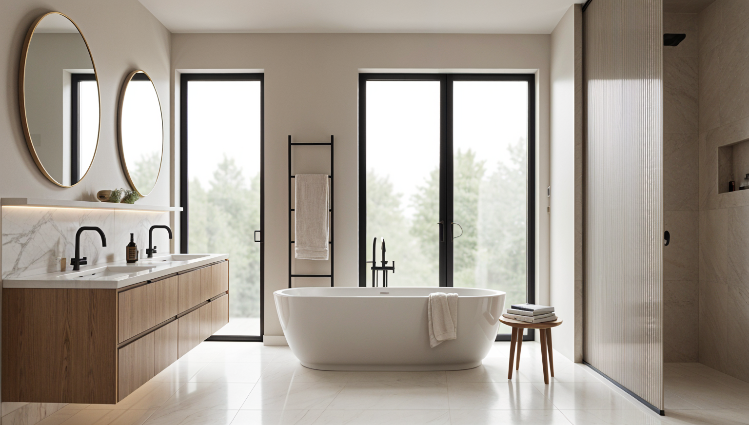 modernist you are generating a material id pass from the given rendering image do not modify the camera angle lighting shadows colors materials or geometry in the original image keep the image composition 100 identical instead create a separate material id image fill each distinct material with a unique solid color colors should be flat with no texture no gradient no noise adjacent materials must have clearly different colors maintain precise edges and correct boundaries based on the original geometry material color separation guidelines walls one unique color ceiling another solid color floor another solid color wood frames windows doors another color glass another color cabinets another color metal parts faucet stove handles another color appliances fridge washer another color tiles another color the result must look like a typical render element material id pass used for compositing output only the material id image architecture