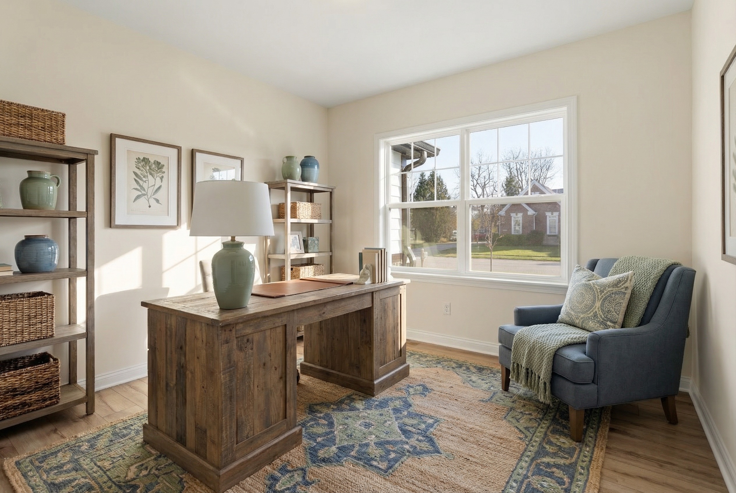 everything looks great but please change the lamp to a champagne bronze desk task lamp