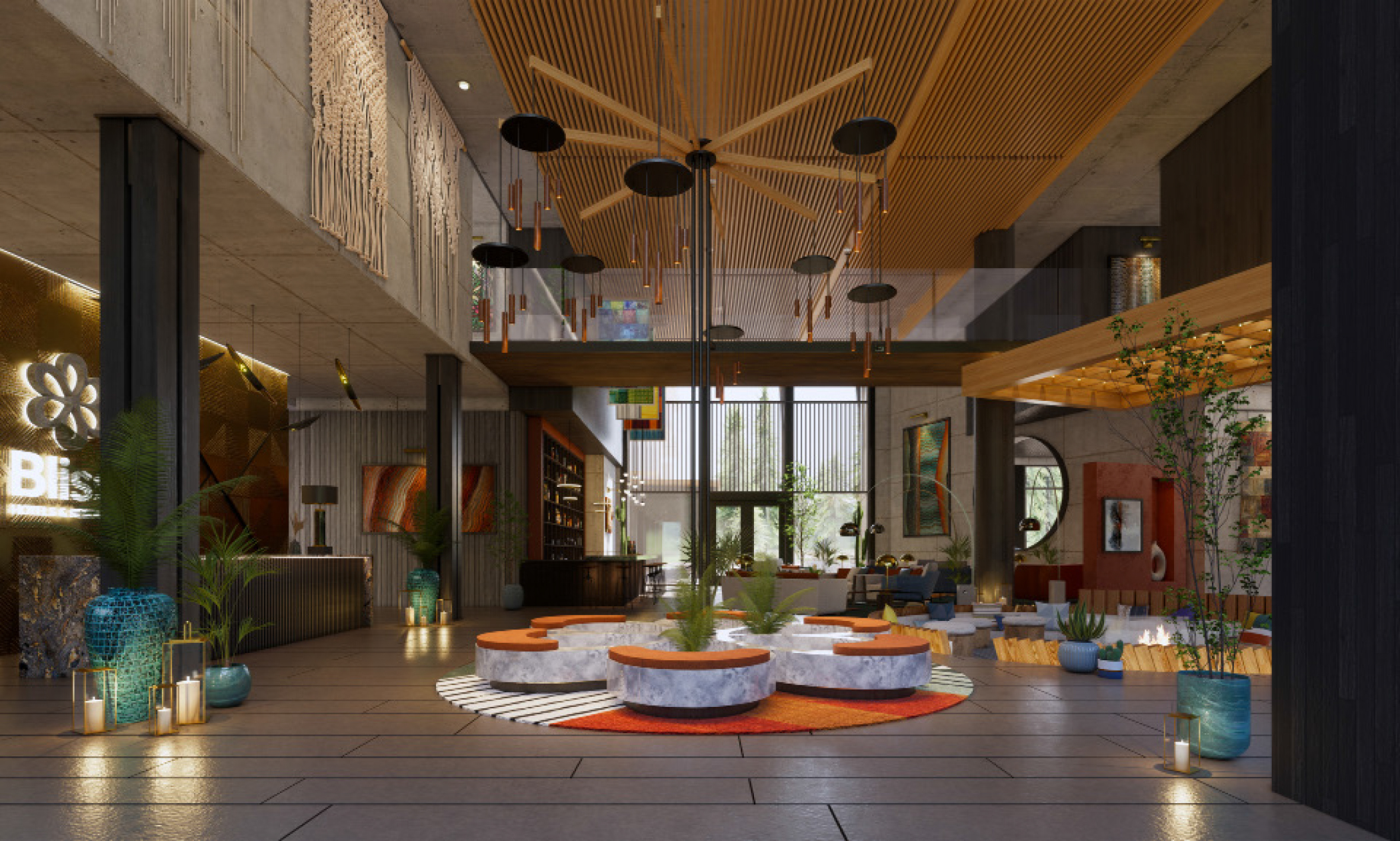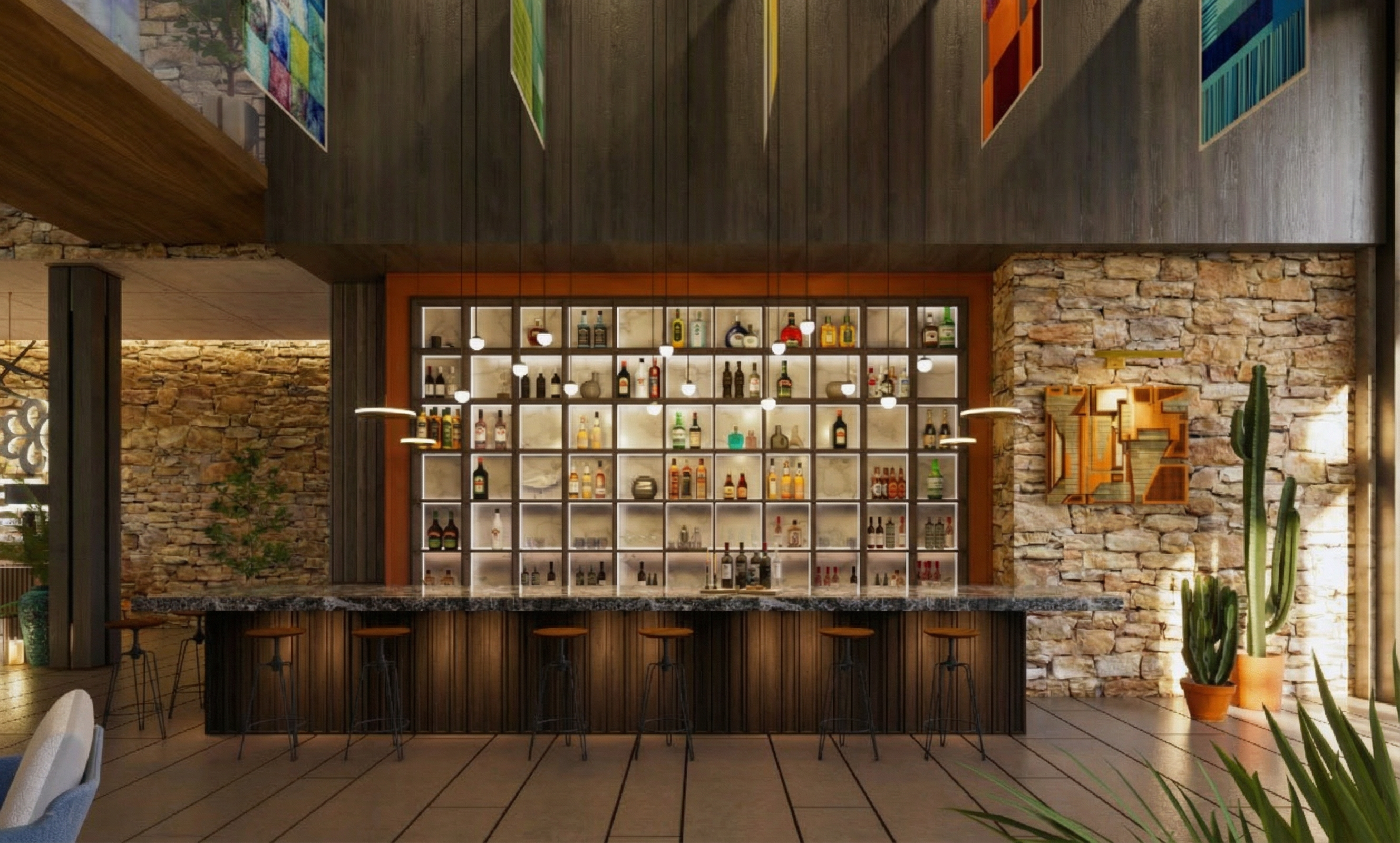 change concrete wall to natural stone add more wood features